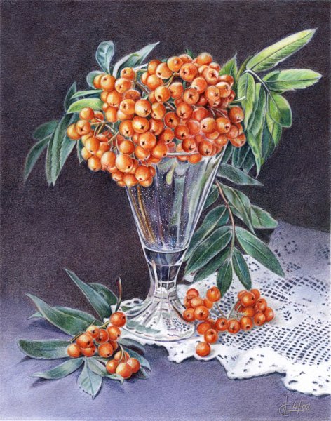 Натюрморт "Карандашом рябина" - это произведение искусства, выполненное с помощью карандаша. На этой картине изображена ветка рябины с яркими красными плодами, которые притягивают взгляд своей красотой и жизненной энергией. Аккуратные штрихи карандаша передают тонкие переходы от светлых до темных оттенков, создавая ощущение объемности и реалистичности. Каждая деталь внимательно проработана, что делает эту работу поистине мастерским шедевром. Натюрморт "Карандашом рябина" приносит в дом атмосферу природной красоты и спокойствия, оживляя интерьер и радуя глаз своей изящностью.