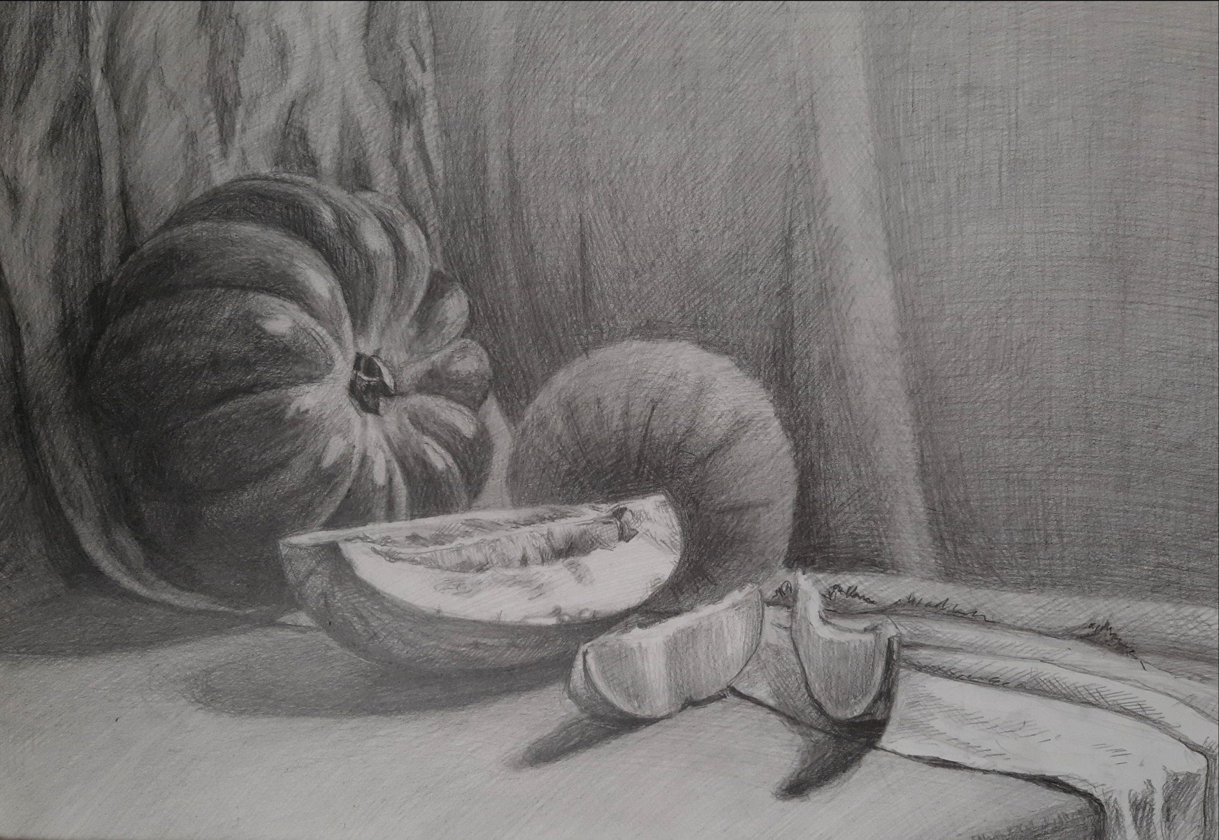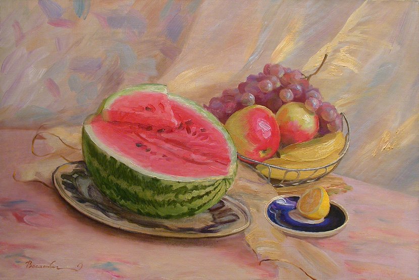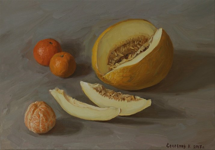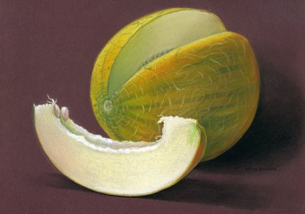 Натюрморт карандашом "Дыня" - это произведение искусства, созданное с помощью мастерства и тонкости рисования. Он воплощает в себе красоту и естественность дыни, передавая ее форму, текстуру и цвета с невероятной точностью. Каждая деталь обдумана и проработана до мельчайших деталей, чтобы ощущения от наблюдения за этим натюрмортом были наиболее реалистичными и полными. Великолепная техника и аккуратность линий делают этот натюрморт уникальным и запоминающимся произведением искусства, которое будет радовать глаза и вызывать восхищение у всех его зрителей.