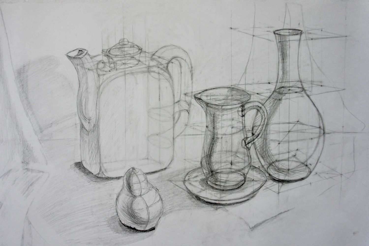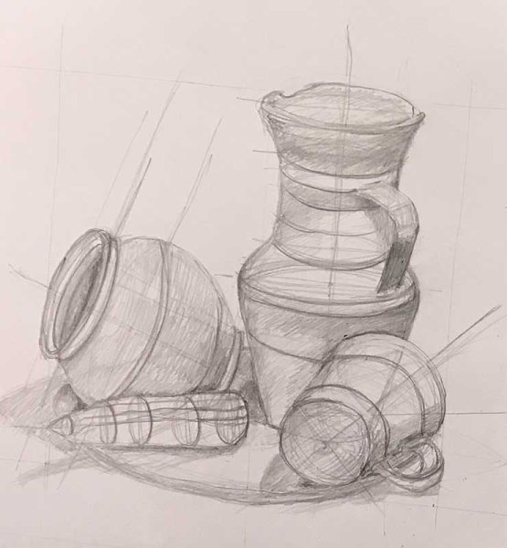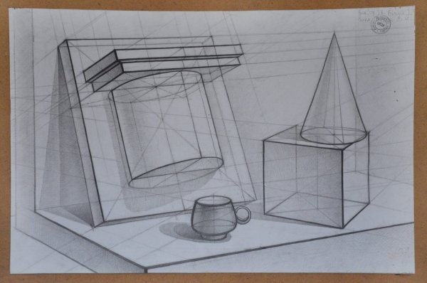 Линейно-конструктивный натюрморт, выполненный карандашом, - это произведение искусства, которое отличается точностью, ясностью линий и стройностью композиции. В каждой детали этого натюрморта можно увидеть тщательную проработку, отражающую мастерство художника. Каждый элемент, будь то фрукты, цветы или предметы интерьера, описывается тонкими и аккуратными линиями, создавая эффект объемности и реалистичности. Линии в этом натюрморте играют особую роль, они не только структурируют композицию, но и передают настроение и эмоции. Этот вид искусства позволяет зрителю насладиться детальной проработкой и вниманием к мелочам, открывая новые грани красоты и гармонии. Линейно-конструктивный натюрморт карандашом - это уникальное искусство, способное поразить своей тонкостью и неповторимостью.