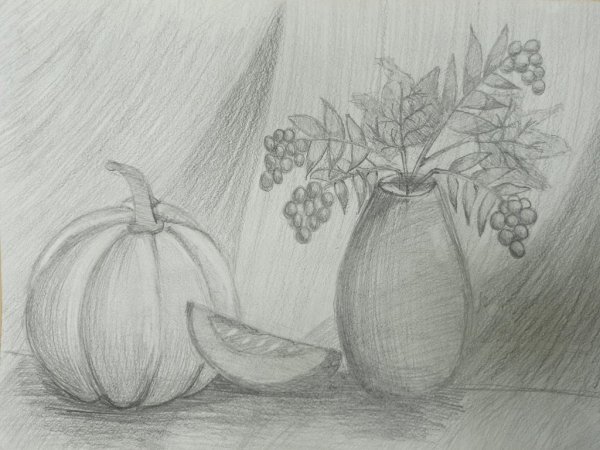 Грустный осенний натюрморт, нарисованный карандашом, переносит нас в мир тихой и меланхоличной красоты природы. Он олицетворяет окончание лета и приход холодных дней, отражая в своих контурах спадающие листья, увядшие цветы и сумерки, которые приближаются. Каждая линия, каждая тень в этом произведении искусства создают атмосферу печали и ностальгии, заставляя нас задуматься о скоротечности времени и преходящей красоте. Этот грустный осенний натюрморт карандашом заставляет нас остановиться и почувствовать красоту в мгновение, которое скоро исчезнет, и напоминает нам о важности наблюдения и ценности каждого момента жизни.