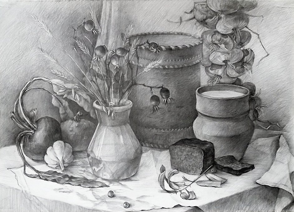 Натюрморт с колосьями карандашом - это произведение искусства, которое захватывает своей простотой и одновременно глубиной. Колосья, символизирующие изобилие и богатство природы, изображены мастерски и реалистично с помощью карандаша. Каждая деталь, каждая линия передают нежность и хрупкость этих растений, создавая уникальную атмосферу на полотне. Натюрморт с колосьями карандашом вызывает в зрителе чувство спокойствия и благодарности за прекрасный мир природы, который нас окружает. Такое произведение идеально подходит для тех, кто ценит простоту и естественность и желает добавить эту атмосферу в свой интерьер или коллекцию искусства.