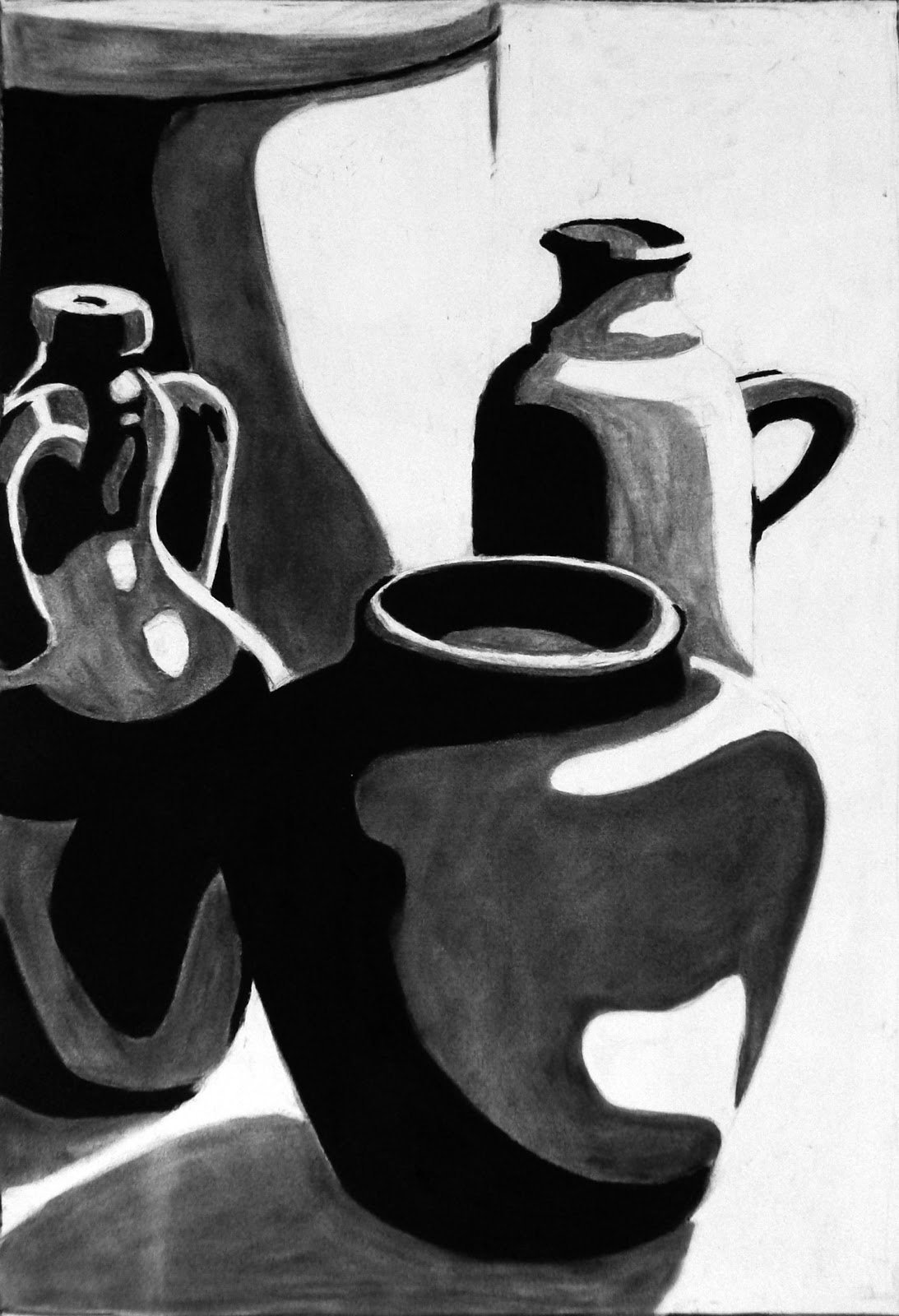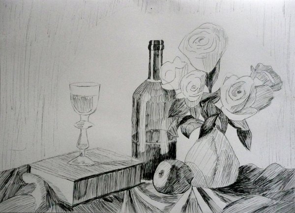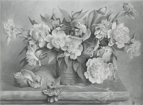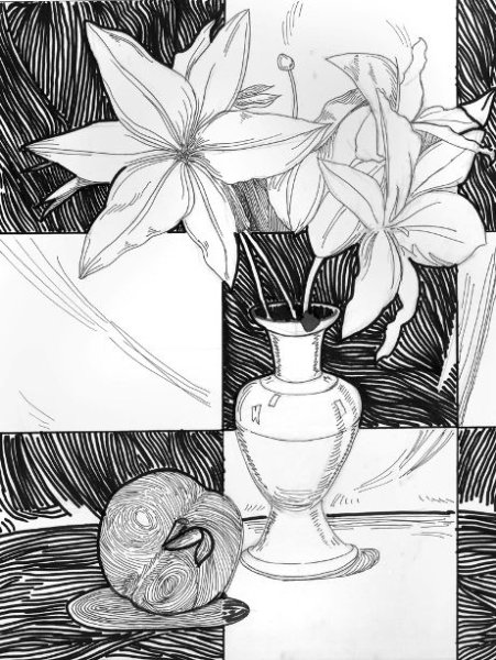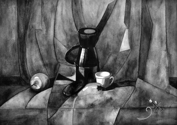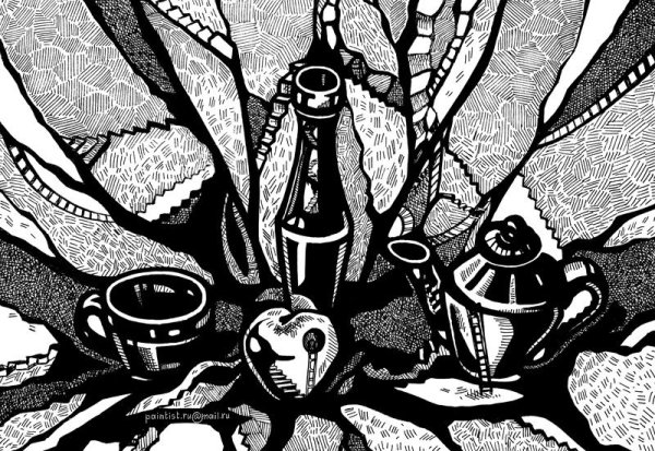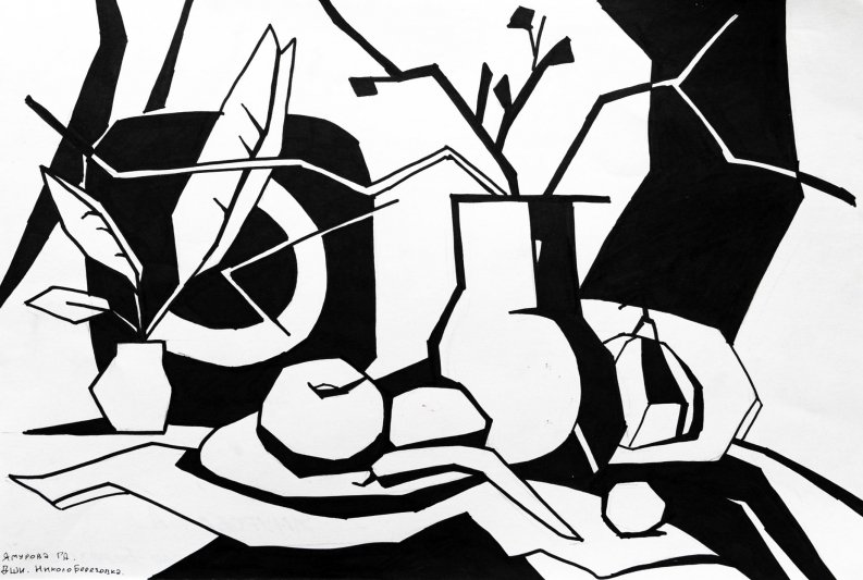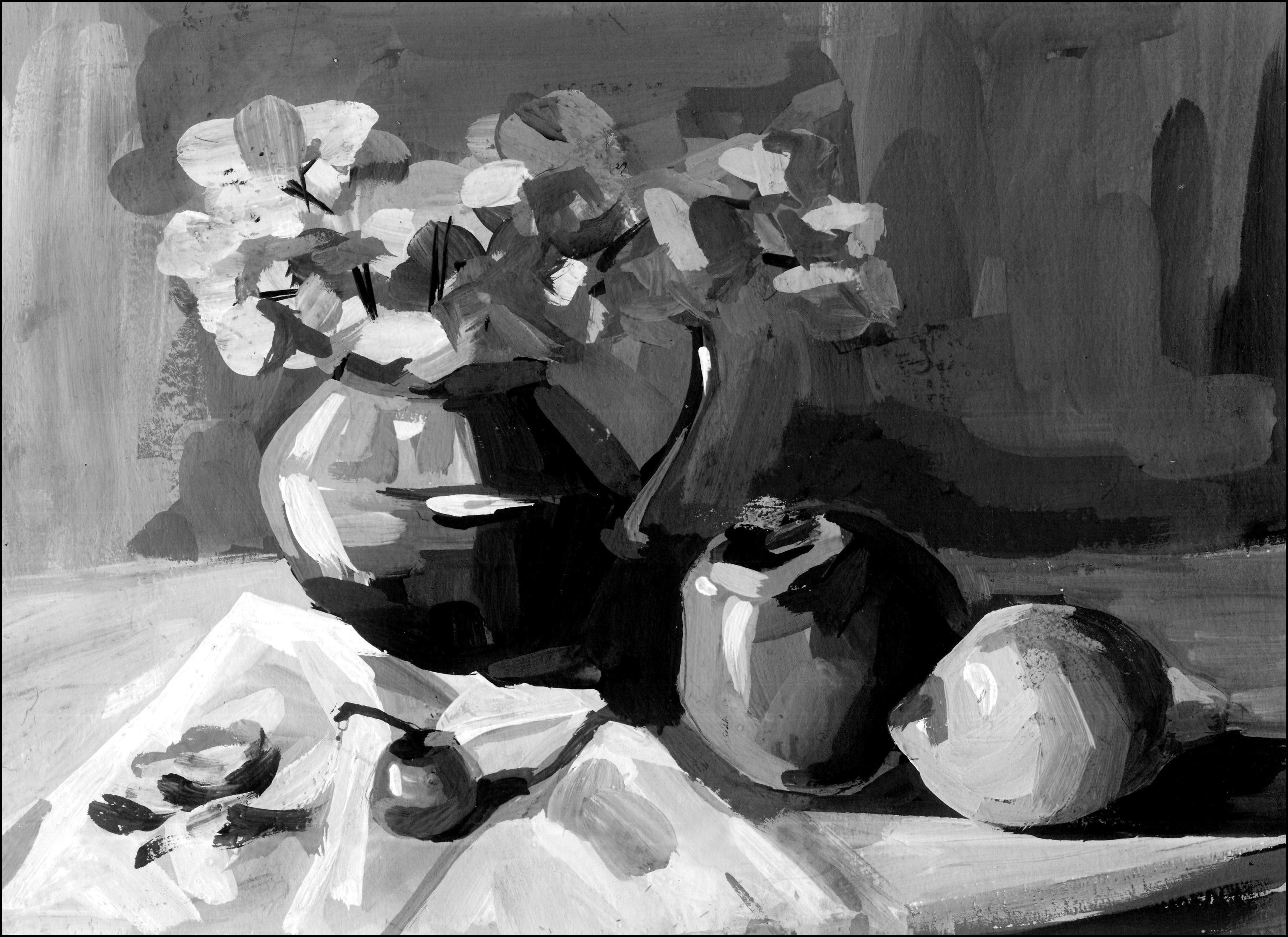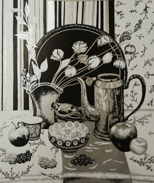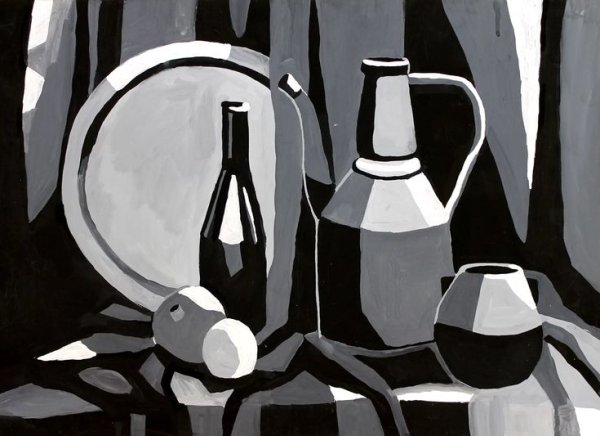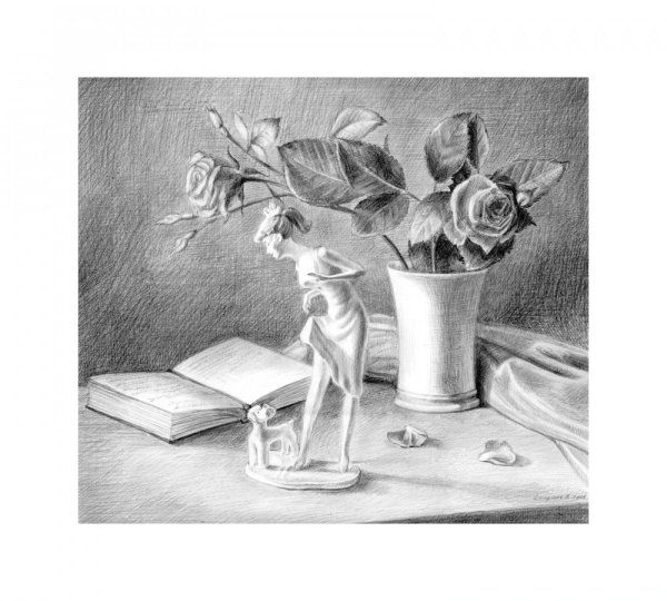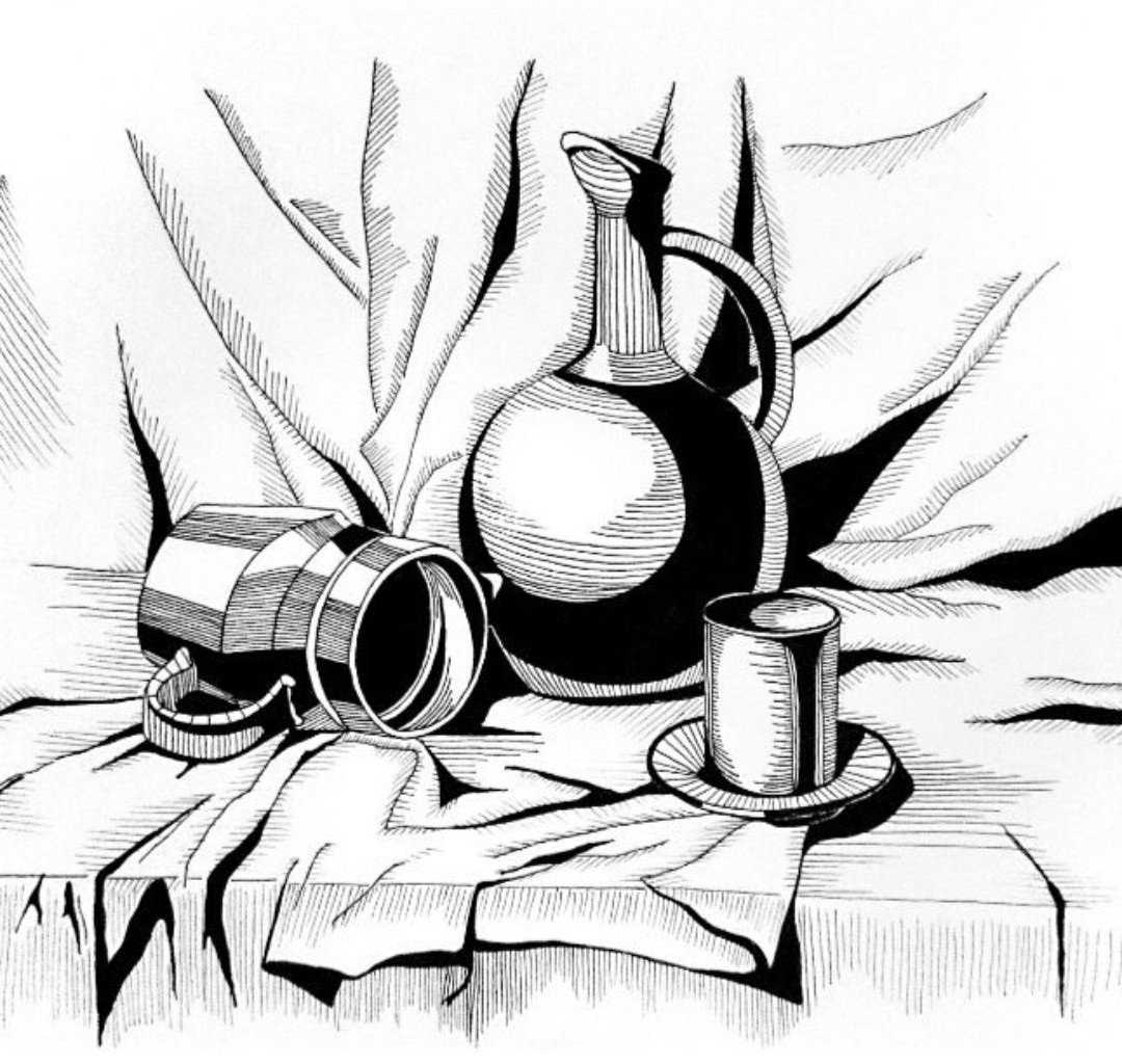 Натюрморт в черно-белом цвете - это рисунок, выполненный с использованием только оттенков серого. Такой подход к созданию изображения придает ему особый эффект и глубину. Черно-белый натюрморт может быть очень выразительным и загадочным, поскольку он уделяет больше внимания форме, текстуре и светотенистым переходам. Это позволяет зрителю фокусироваться на деталях и наслаждаться игрой тонов, создавая атмосферу тайны и интриги. Рисунок такого стиля может быть интересным выбором для любителей классической эстетики или желающих добавить немного ностальгии и романтики в свое пространство.