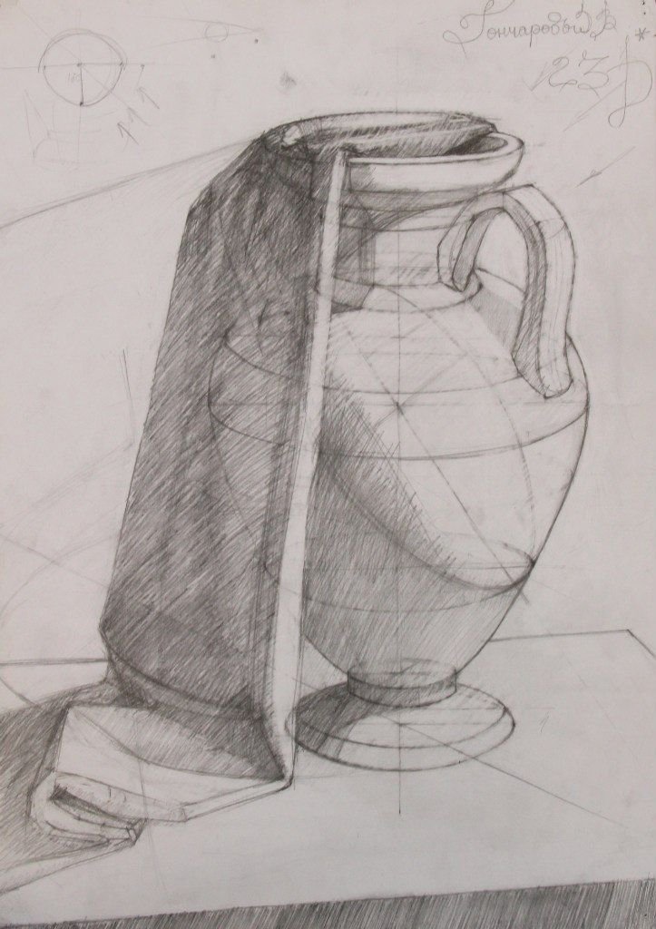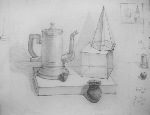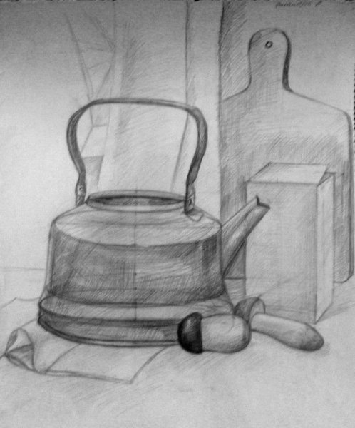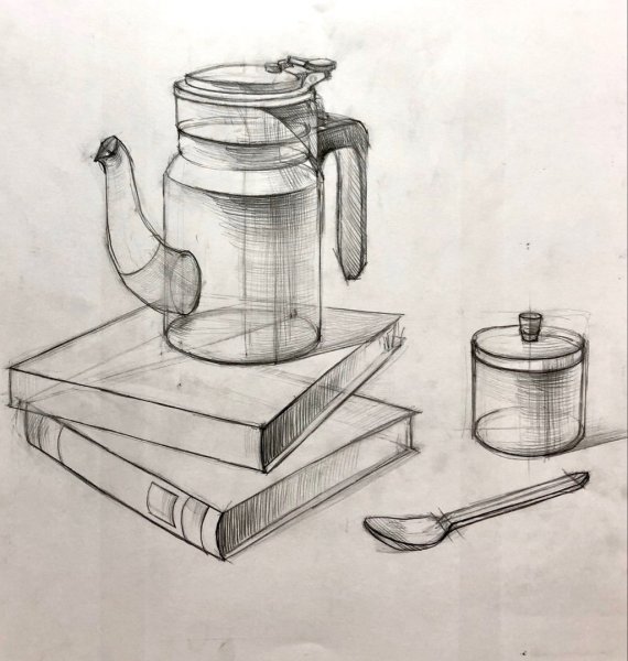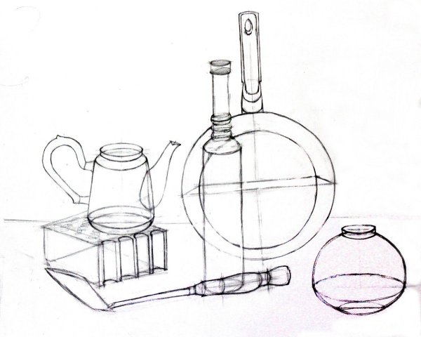 Конструктивный рисунок натюрморта из бытовых предметов - это картина, которая отображает композицию различных предметов, используемых в повседневной жизни. В таком рисунке особое внимание уделяется структуре и форме каждого объекта, а также их взаимоотношениям в пространстве. Бытовые предметы, такие как чашки, блюда, фрукты, книги и другие, расставляются с учетом гармонии цветов, размеров и текстур. Конструктивный подход в рисунке натюрморта подразумевает точность и аккуратность в передаче деталей, придавая им объем и реалистичность. Этот вид рисунка позволяет создать интересную и художественную композицию, где каждый предмет играет свою роль в создании общего впечатления. Он может быть использован как самостоятельное произведение и как элемент декора в интерьере, добавляя в помещение нотку элегантности и изысканности.