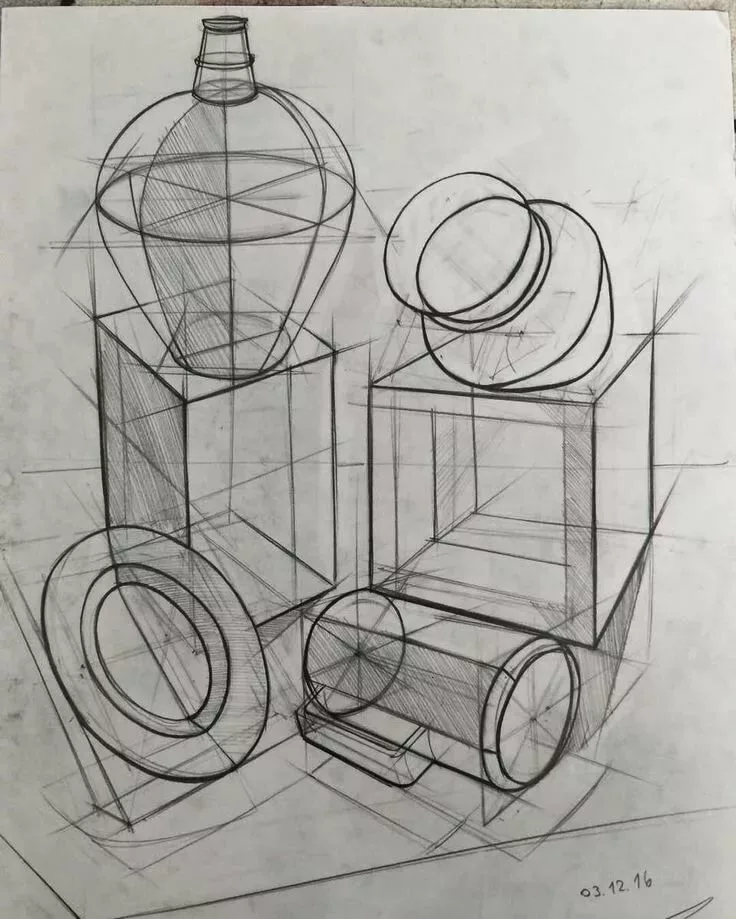 Натюрморт с эллипсами, нарисованный карандашом, представляет собой уникальное произведение искусства, которое привлекает внимание своей простотой и одновременно сложностью. Эллипсы, изображенные на картине, создают игру света и тени, придавая композиции глубину и объем. Карандашная техника позволяет передать каждую деталь с большой точностью и реализмом, добавляя работе особый шарм. Наблюдая за натюрмортом, можно заметить тонкие переходы от светлых оттенков до глубоких теней, которые придают изображению реалистичности и гармонии. Натюрморт с эллипсами карандашом приглашает зрителя насладиться прекрасными формами и текстурой, а также задуматься о мире окружающих нас объектов и их символическом значении.