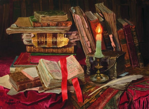 Книжный натюрморт - это удивительная форма искусства, которая объединяет книги и рисунки в одном потрясающем композиционном решении. В этом жанре художник создает изящные композиции, используя книги разных размеров, форм и цветов, а также рисунки на страницах этих книг. Каждый элемент в натюрморте имеет свое значение и символизирует определенную идею или эмоцию. Рисунки на страницах книг могут быть как классическими произведениями известных художников, так и оригинальными творениями самого художника. Книжный натюрморт способен не только визуально привлекать, но и поражать глубоким смыслом и эстетическим воздействием, делая его поистине уникальным и привлекательным для ценителей искусства.
