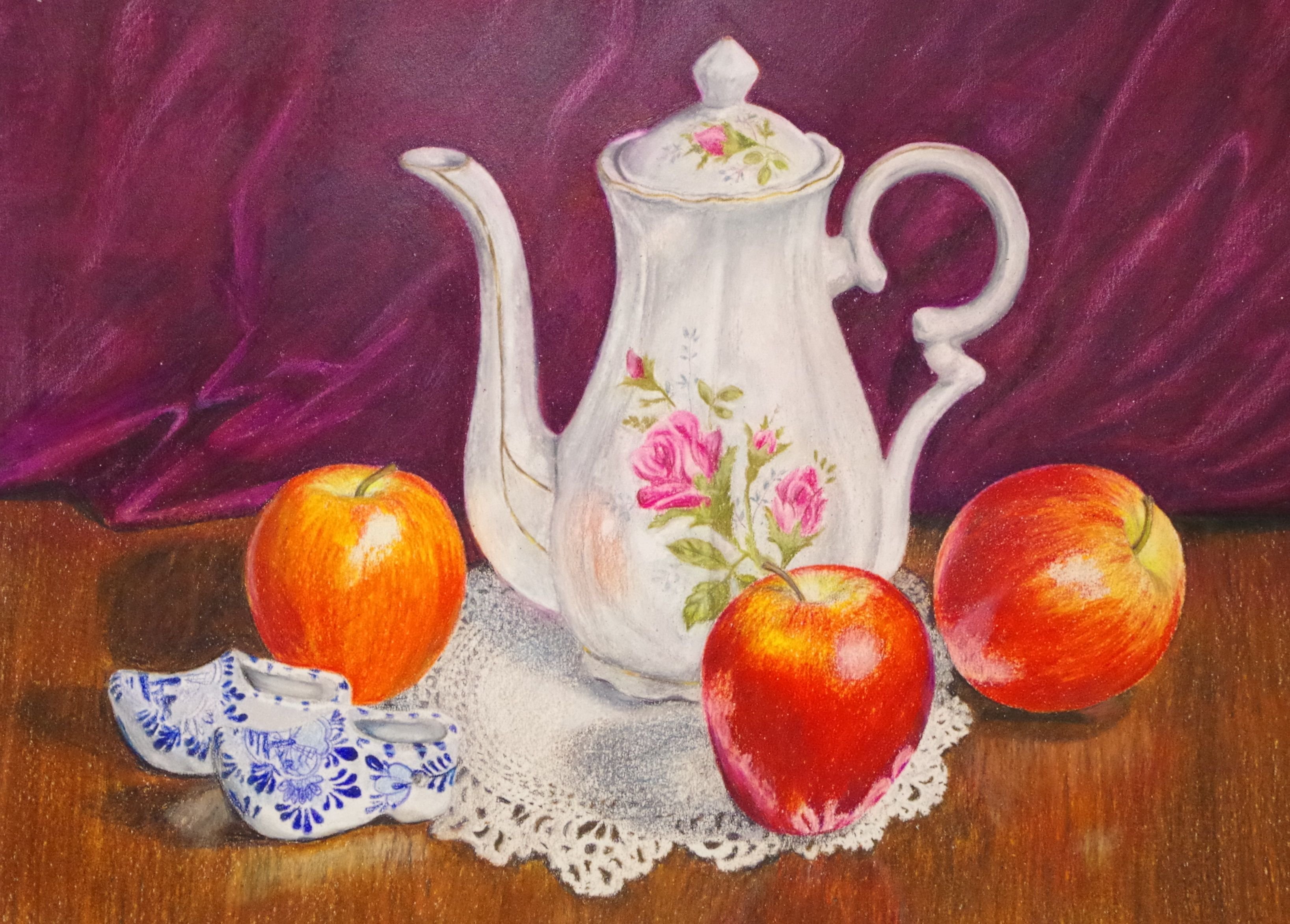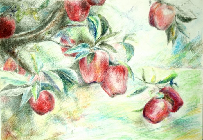 Яблоко, окруженное яркими карандашами, создает уникальный натюрморт, который привлекает взгляды и вызывает интерес. Каждый цветной карандаш придает изображению особую живость и игривость, подчеркивая яркость и сочность самого яблока. Комбинация различных оттенков создает гармоничное сочетание цветов, которое добавляет артистичности и оригинальности этому произведению. Каждая черточка и штрих карандаша точно передает текстуру и форму яблока, делая его похожим на реальное фруктовое произведение искусства. Этот натюрморт с цветными карандашами яблоко станет ярким акцентом в любом интерьере и позволит насладиться красотой фрукта, изображенного в такой необычной и яркой технике.