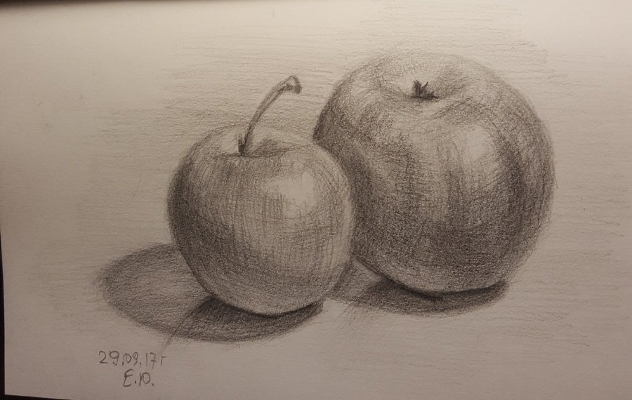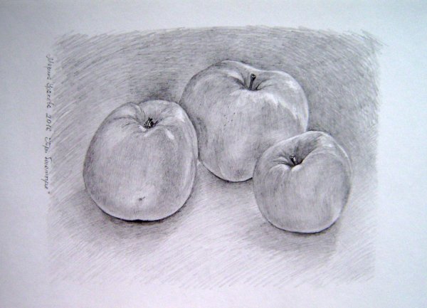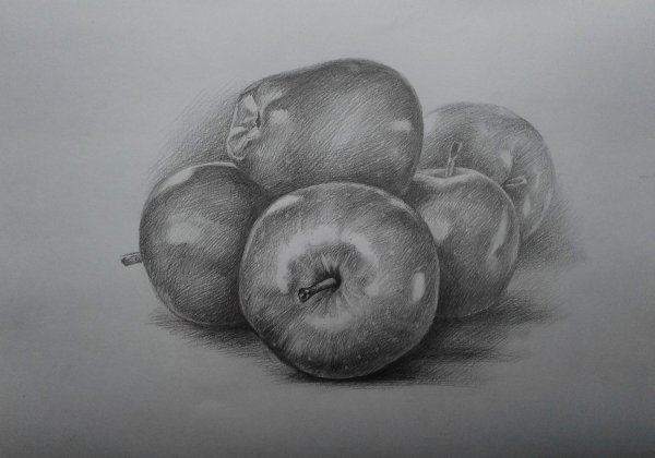 Великолепный натюрморт, изображающий два сочных яблока, нарисован карандашом с невероятной мастерством и тонкостью. Каждая деталь этого произведения искусства проникнута гармонией и эстетическим восхищением. Карандашные штрихи создают реалистичный вид каждого яблока, передавая его форму, текстуру и оттенки цвета. Взгляд притягивается к яркости яблок, которые словно оживают на бумаге под рукой талантливого художника. Это произведение искусства способно вызывать восхищение и восторг у любителей искусства и природы.