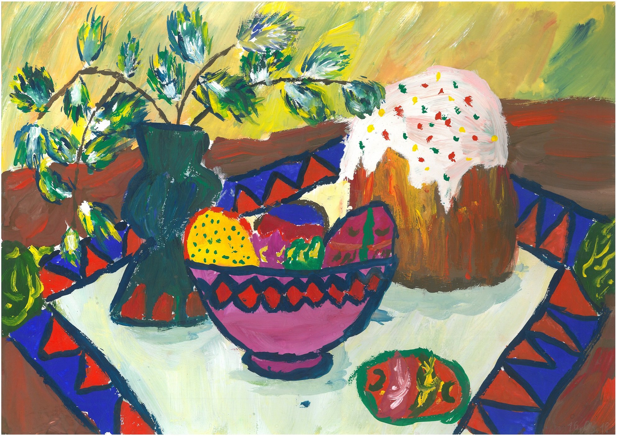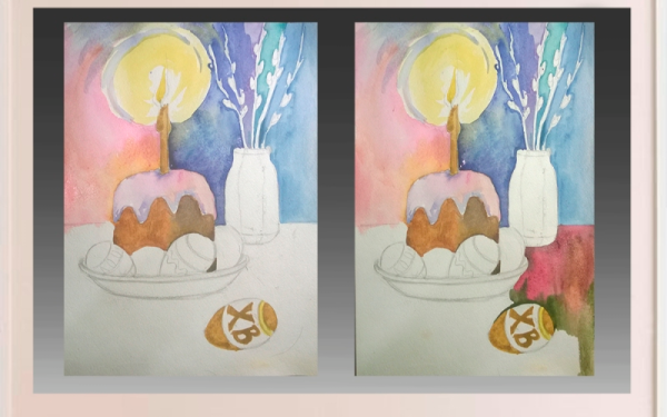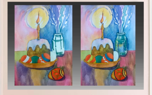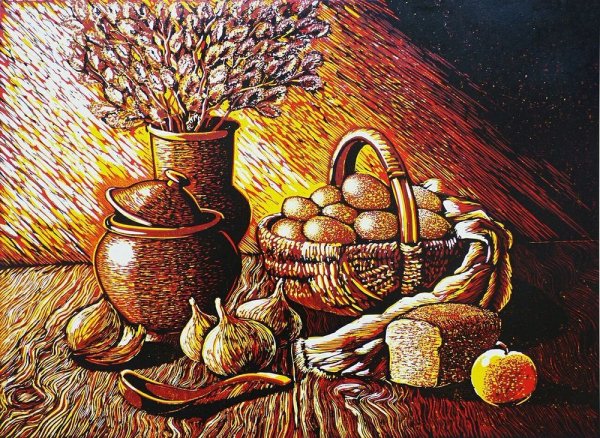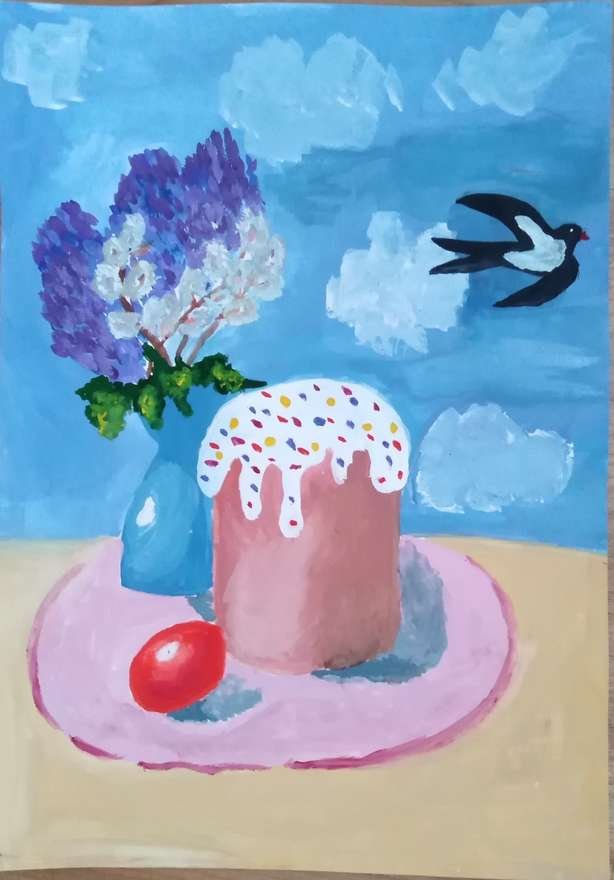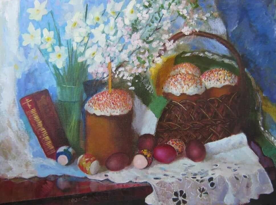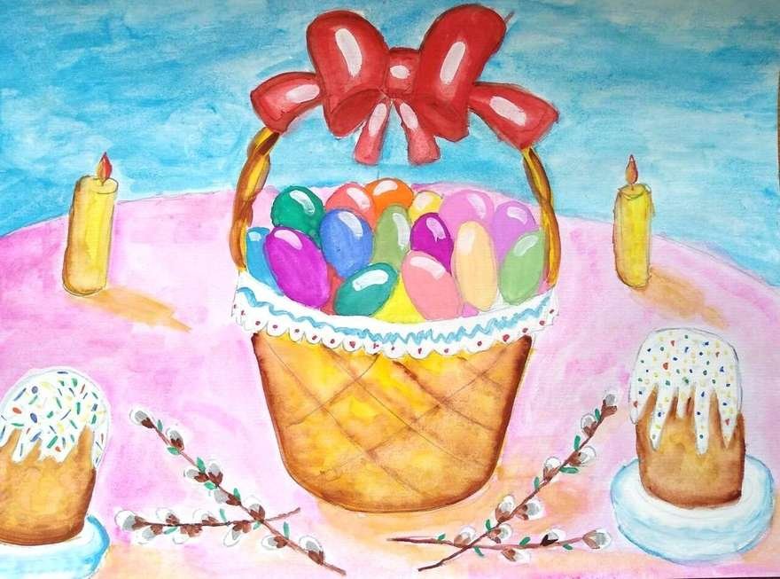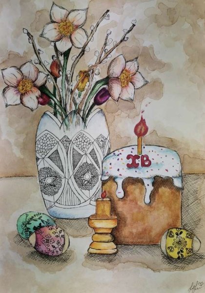 Рисунок натюрморт "Пасха" - это красивое и символичное изображение, которое отражает особенности этого важного праздника. На рисунке можно увидеть разноцветные пасхальные яйца, они являются главным символом Пасхи и символизируют новую жизнь и воскрешение. Яркие и насыщенные цвета яиц добавляют эффектной динамики и радостного настроения. Возможно, на рисунке также изображены пасхальные корзины с травой, цветами и другими пасхальными атрибутами. Весь рисунок создает атмосферу торжества и передает великолепие и волшебство праздника Пасхи.