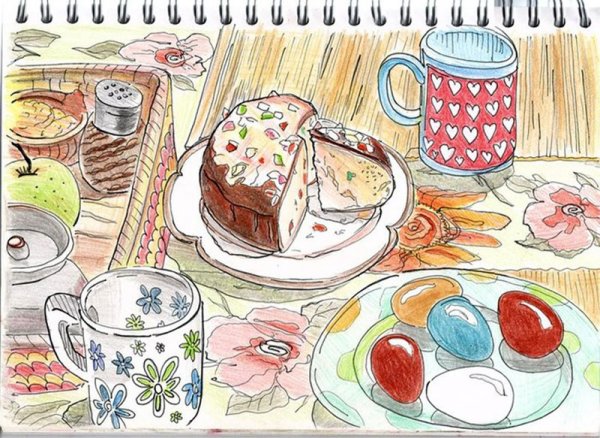Представьте себе натюрморт, который изображает праздничный стол. Этот рисунок олицетворяет радость и праздничное настроение, перенося нас в уютную обстановку праздничного застолья. На столе расставлены разнообразные яркие блюда, которые вызывают аппетит и приглашают насладиться вкусом праздника. Фрукты, сладости, пирожные, мясные и рыбные блюда – все это представлено на рисунке во всей его красоте и изысканности. Шампанское или вино в элегантных бокалах добавляет нотку роскоши и праздничности к общей композиции. Каждая деталь на этом натюрморте тщательно проработана, чтобы передать всю суть и атмосферу праздника. Этот рисунок идеально подойдет для оформления интерьера дома или ресторана во время праздничного сезона, добавляя нотку торжественности и радости в окружающую обстановку.