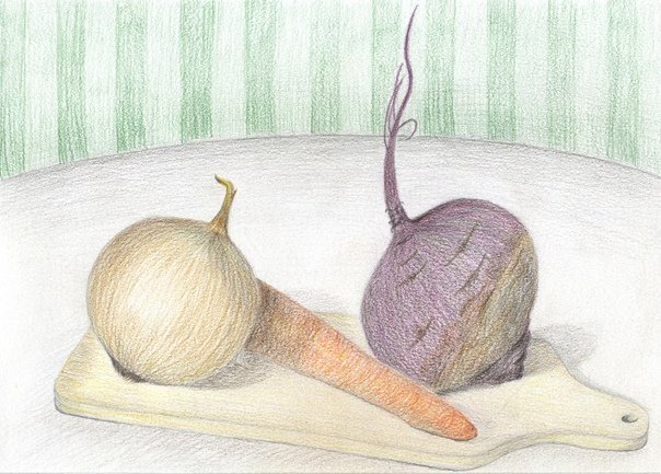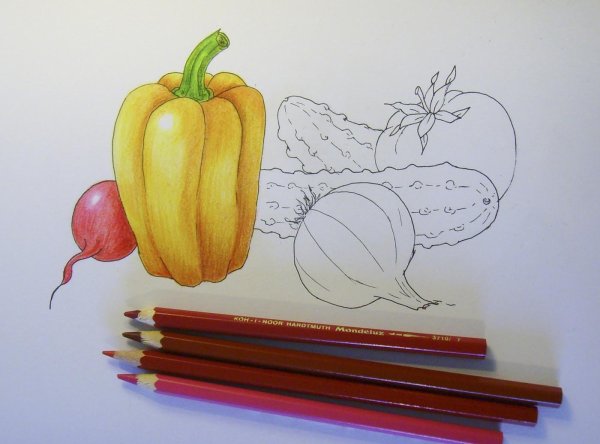 Натюрморт овощей, нарисованный карандашом, – это прекрасный способ познакомить детей с разнообразным миром овощей и привить им интерес к правильному питанию. В таком натюрморте можно изобразить яркие и сочные овощи, такие как помидоры, перцы, морковь и брокколи. Каждый овощ может быть тщательно прорисован, передавая его форму, текстуру и цвет. Карандаши позволяют создать детализированные и реалистичные изображения, что делает натюрморт овощей еще более привлекательным и интересным для детей. Занятие рисованием натюрморта овощей поможет детям развить свои навыки визуального восприятия, творческое мышление и моторику рук. Оно также способствует узнаванию и запоминанию различных видов овощей, что может поспособствовать формированию здорового отношения к питанию в будущем.