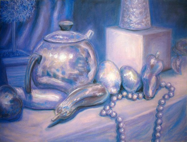 Описание: Натюрморт в холодных тонах, выполненный карандашами, призывает к ощущению прохлады и спокойствия. Оттенки голубого, фиолетового и серого создают атмосферу тихой элегантности. Каждая деталь тщательно проработана мастерской рукой художника - от плавного перехода цветов до тонких линий и теней. Предметы на натюрморте - цветы, фрукты или предметы интерьера - заморожены во времени, вызывая чувство бесконечности и неподвижности. Эта картина станет прекрасным украшением для любого помещения, добавляя ему изысканности и холодной эстетики.