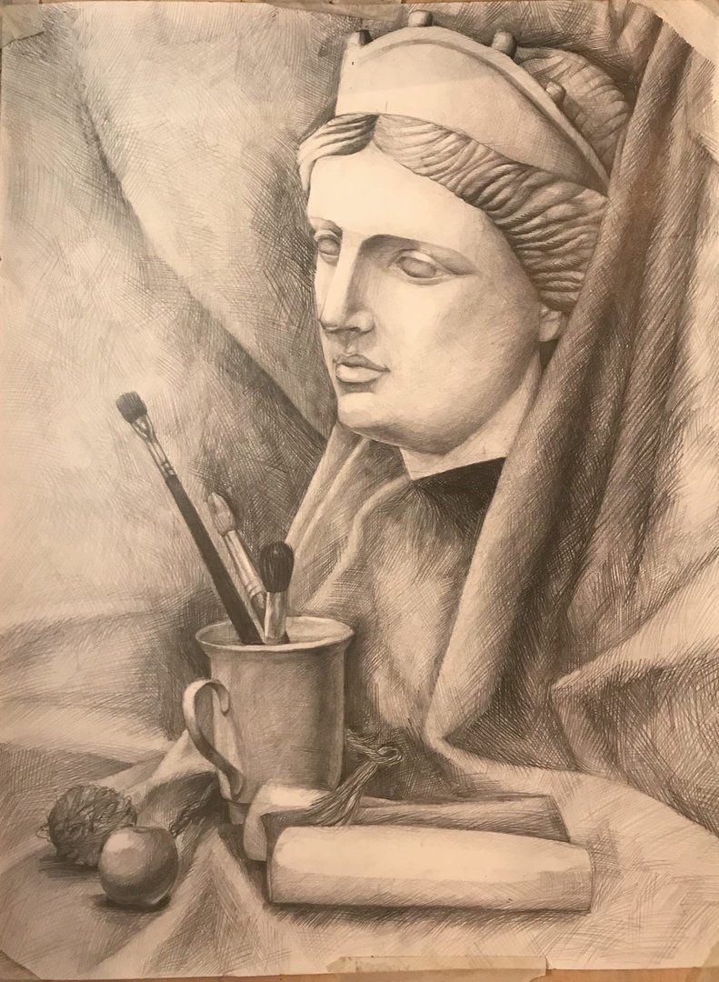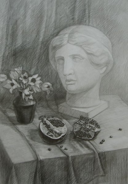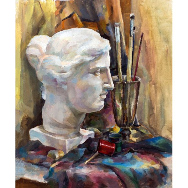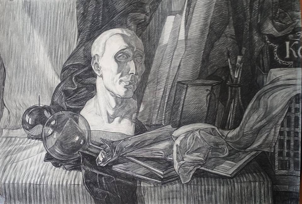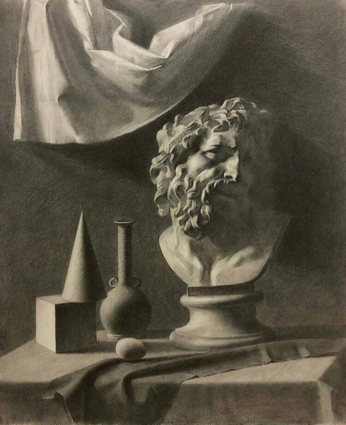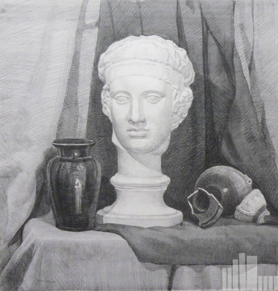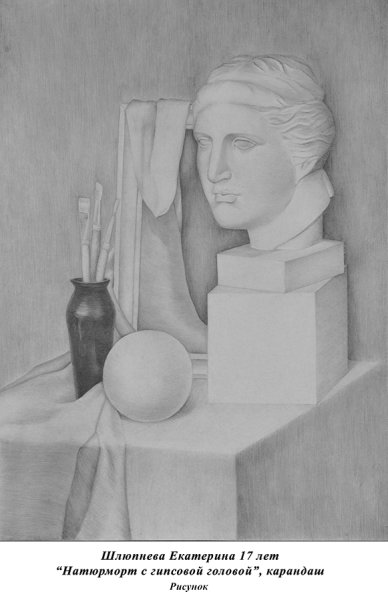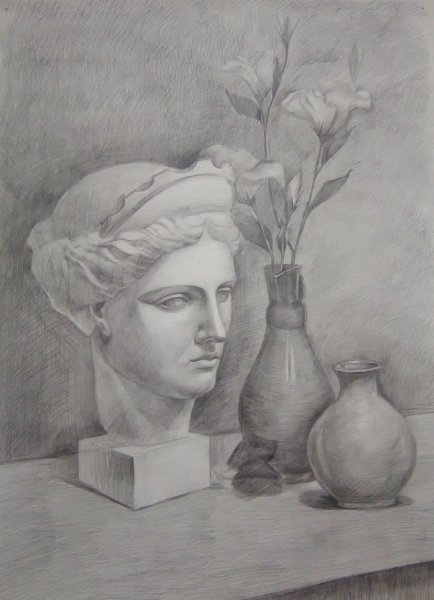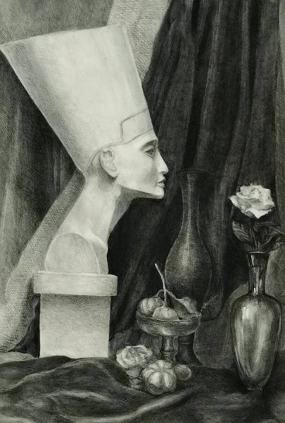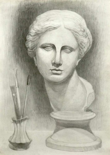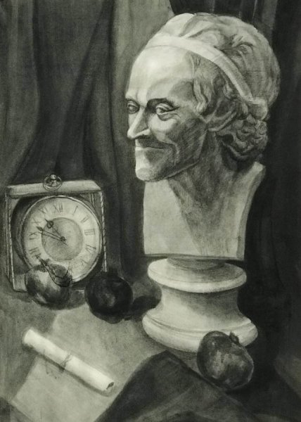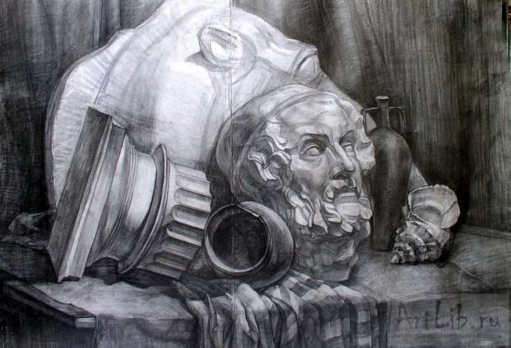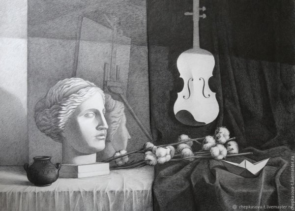 Натюрморт с гипсовой головой - это рисунок, который позволяет нам ощутить прекрасное сочетание классической художественной традиции и современного взгляда на искусство. Этот натюрморт представляет собой композицию из уникальной гипсовой головы, которая является символом красоты и эстетики, а также различных других объектов, создающих особую атмосферу. Рисунок передает нежность и элегантность этого натюрморта, а также играет с контрастами света и тени, чтобы создать глубину и объемность. Он приковывает взгляд зрителя и заставляет задуматься о скрытых смыслах и символике, содержащихся в гипсовой голове и окружающих ее предметах. Натюрморт с гипсовой головой - это произведение искусства, которое способно вызвать эмоции и вдохновение у каждого, кто его видит.