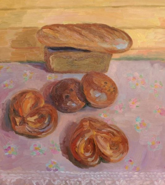 Наш натюрморт на тему хлеба - это замечательный рисунок, который захватывает и воссоздает атмосферу теплоты и уюта. На этом произведении искусства запечатлены разнообразные виды хлеба - свежеиспеченные булочки с золотистой корочкой, пшеничные и ржаные буханки, крошки и крошечные муковозкий гранулы. Изображение привлекает внимание своей детализацией и реалистичностью каждого элемента - можно почувствовать запах свежего выпечки и ощутить шелест бумажных пакетиков, в которых обычно упаковываются хлебные изделия. Рисунок создает ассоциации с домашним уютом, семейными традициями и приятными воспоминаниями о вкусной еде. Натюрморт на тему хлеба - это не только искусство, но и эмоции, которые передаются зрителю и вызывают чувство голода и желание попробовать этот ароматный и сытный продукт.