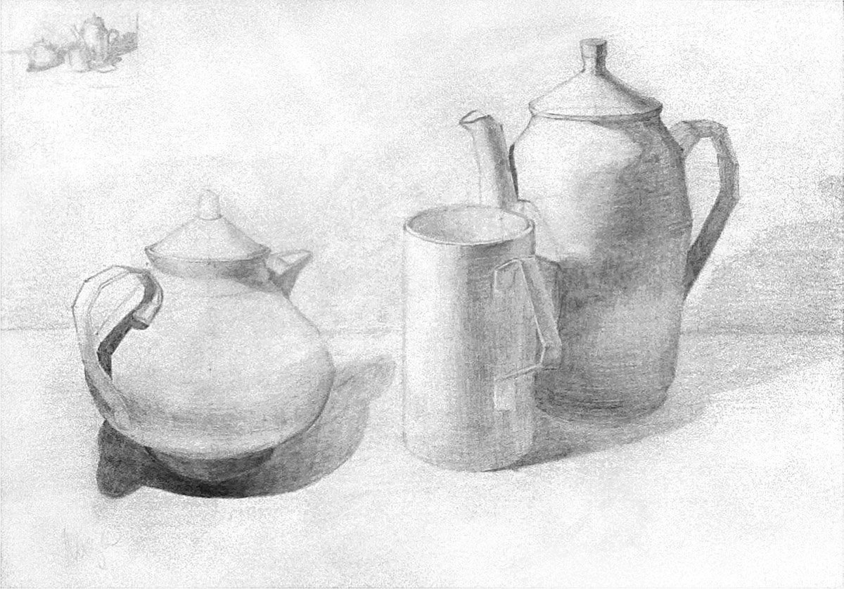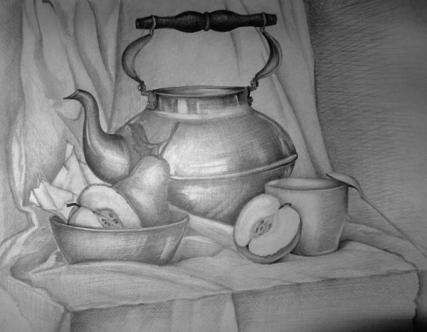 Натюрморт с посудой, выполненный карандашом для срисовки, представляет собой уникальное произведение искусства. В этой работе мастерство художника проявляется в каждой детали: тонких линиях, переплетающихся контурах и тени, которые создают объем и глубину изображения. Карандашная техника позволяет передать всю нежность и хрупкость посуды, подчеркнуть ее текстуру и отобразить богатство мелких деталей. Особая чувствительность этого материала позволяет художнику выразить свое видение объекта, играя с оттенками и светотенями. Таким образом, натюрморт с посудой, нарисованный карандашом для срисовки, становится не только отражением реальности, но и интерпретацией мира через глаза талантливого художника.