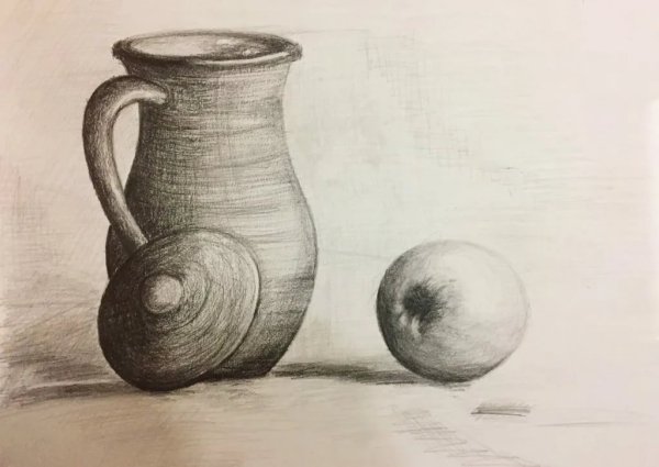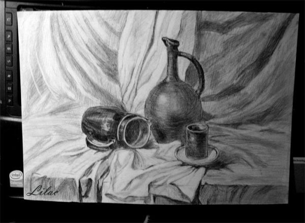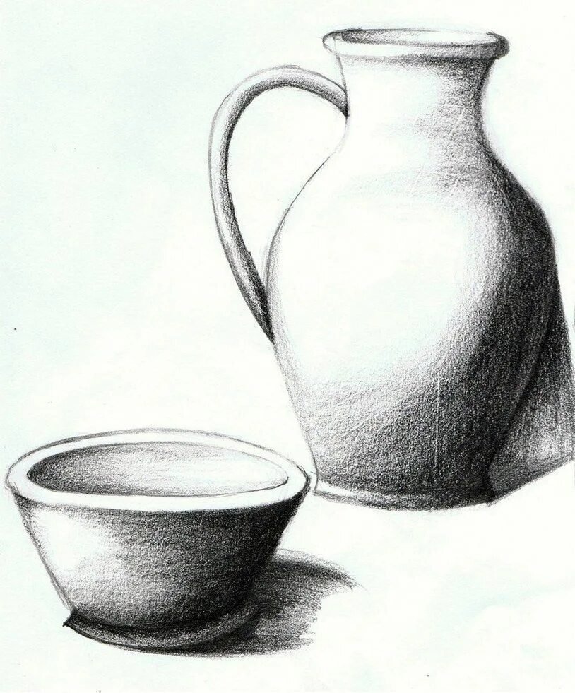 Натюрморт карандашом с изображением кувшина и стакана - это произведение искусства, созданное с помощью простого инструмента, но передающее богатство деталей и тонкость техники. Кувшин и стакан представлены внимательно проработанными линиями, отражая свои формы, текстуры и особенности поверхности. Различные тени и переходы от светотени к светлому белому фону добавляют глубину и объемность композиции. Это мастерство позволяет зрителю взглянуть на обыденные предметы с новой перспективы и оценить их простоту и красоту. Натюрморт карандашом с кувшином и стаканом является одновременно элегантным и простым, вызывая восхищение своей уникальной художественной интерпретацией.