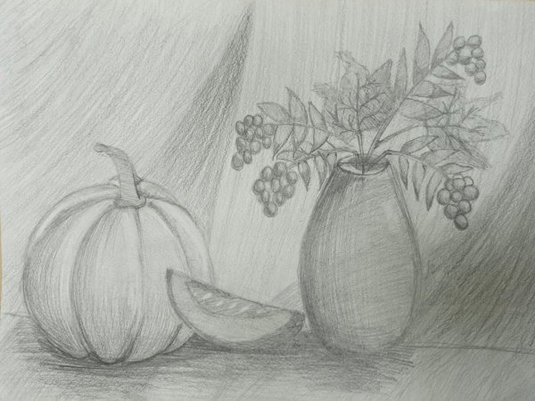 Осенний натюрморт - удивительное произведение искусства, которое можно воспроизвести при помощи карандаша. Композиция представляет собой многочисленные осенние предметы, расставленные на столе или подставке. В центре внимания может быть корзина с яркими листьями разных оттенков, дополненная свежими плодами и орехами. Вокруг этой центральной фигуры могут быть разложены другие атрибуты осени, такие как грибы, шишки, желуди и ягоды. Осенний натюрморт создает атмосферу тепла и уюта, передает красоту и богатство окружающей природы в этот сезон. При воспроизведении натюрморта карандашом, вы можете играть с тонами и тенями, чтобы создать объем и глубину изображения, а также использовать различные текстуры, чтобы придать реалистичность каждому элементу композиции. Благодаря такому натюрморту, вы сможете раскрыть свой талант и творческий потенциал, а также насладиться красотой осенней природы.