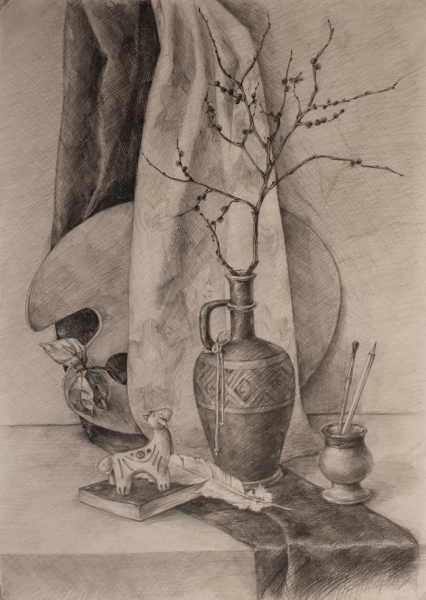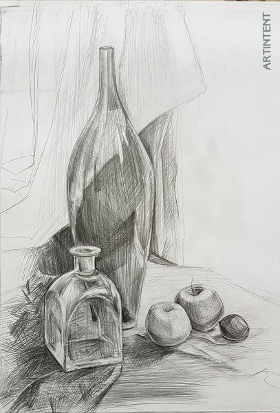 Наш натюрморт в виде наброска - это удивительное произведение искусства, которое захватывает непосредственность момента. Он отличается эмоциональной силой и оригинальностью подачи, позволяя зрителю окунуться в мир предметов и их композиции. Каждая линия и штрих художника нарисованы с легкостью и непосредственностью, передавая энергию и живость объектов. Разнообразие текстур, тонов и форм создают глубину и объемность натюрморта, делая его поистине уникальным. Этот рисунок натюрморта-наброска является воплощением мастерства и творческого проникновения художника, позволяя нам увидеть мир через его глаза.
