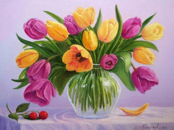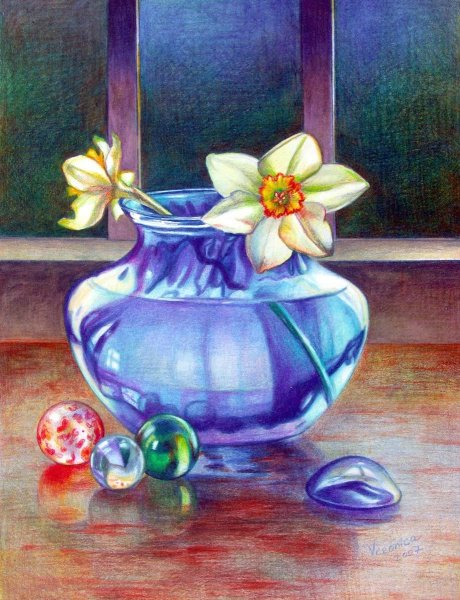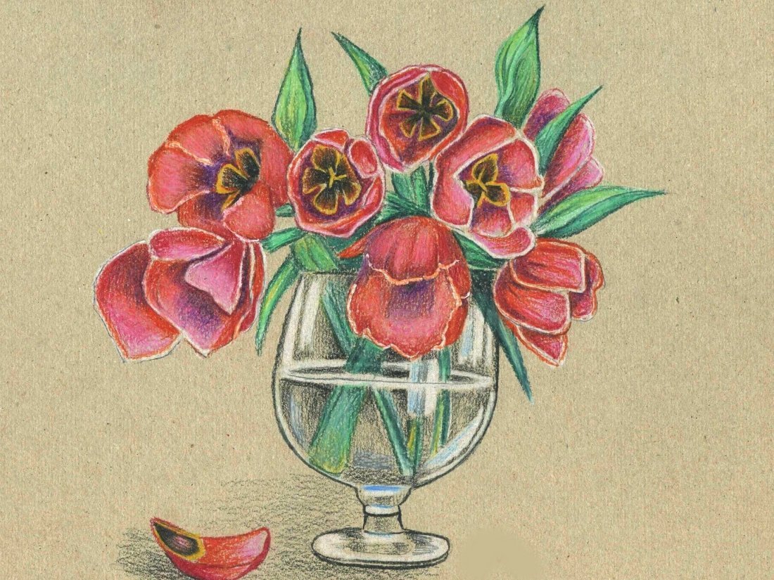 Ваза с цветами, нарисованная натюрморт в технике цветных карандашей, представляет уникальное и изысканное произведение искусства. Яркие и живые оттенки цветов создают атмосферу радости и красоты, приносят свежий ветер в помещение. Каждый штрих карандаша аккуратно проработан, чтобы передать нежность и деликатность каждого лепестка и стебля. Этот натюрморт станет прекрасным украшением для вашего интерьера, добавит в него штрихи элегантности и художественности. Он подчеркнет вашу индивидуальность и оригинальность, станет ярким акцентом в любом помещении. Ваза с цветами, нарисованная цветными карандашами - это не только красивое произведение искусства, но и символ жизни, красоты и гармонии.