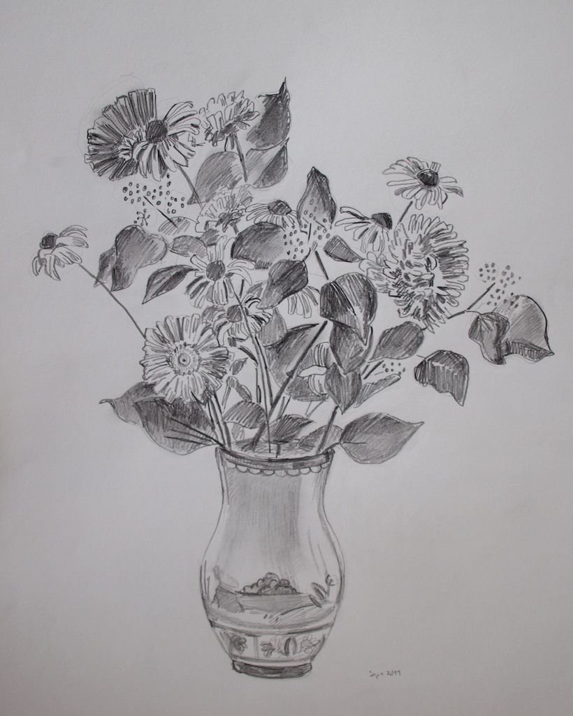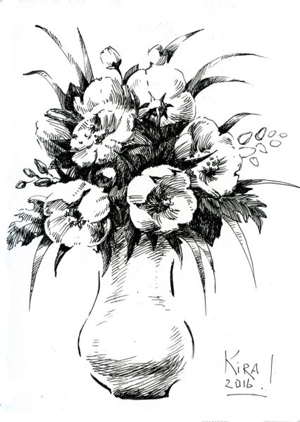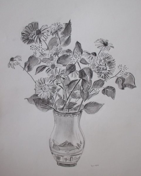 Натюрморт цветов в вазе, выполненный в графике карандашом, представляет собой изумительное произведение искусства. Каждый детально проработанный штрих карандаша передает нежность и красоту каждого цветка, а также тонкие оттенки и текстуры. Ваза, в которой расположены цветы, излучает элегантность и утонченность, создавая гармоничное сочетание с яркими и живыми оттенками лепестков. Это произведение искусства придаст любому интерьеру изысканности и позволит насладиться красотой и неповторимостью природных форм и цветов.
