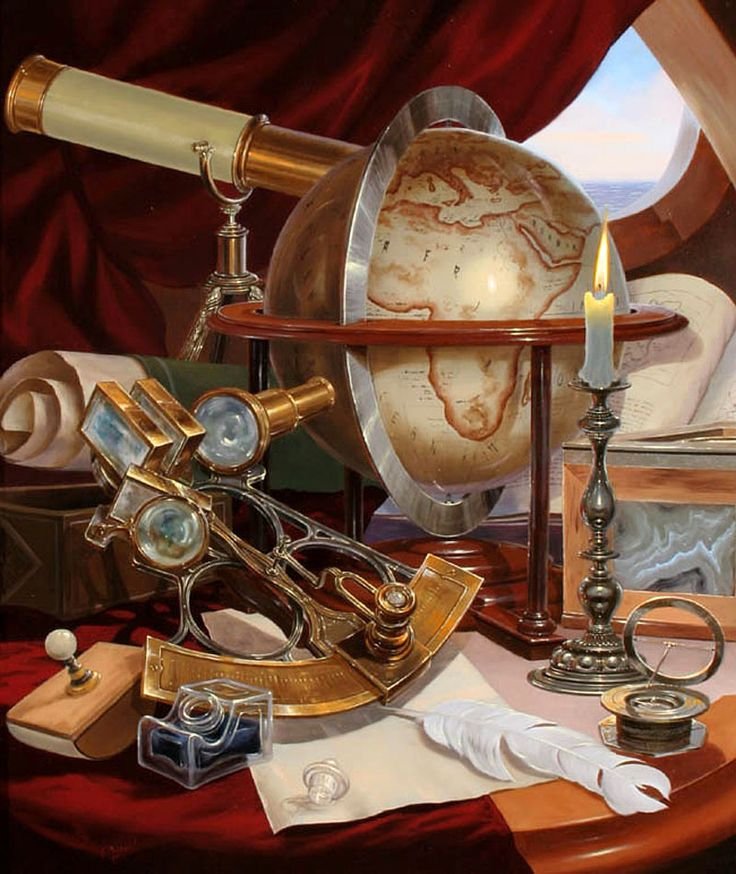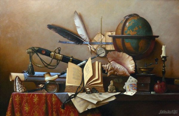Натюрморт "География" - это уникальный и изысканный рисунок, который отображает тематику географии через композицию различных объектов. Каждый элемент натюрморта передает свою частичку мира: карты мира, глобусы, компасы, книги, винты и другие атрибуты. Используя яркие и насыщенные цвета, автор создает ощущение реальности и позволяет зрителю проникнуться увлекательным миром географических исследований. Этот рисунок является не только декоративным элементом интерьера, но и напоминает о значимости географии в нашей жизни, внося акцент на знание и изучение мира. Натюрморт "География" станет прекрасным выбором для всех любителей путешествий и интересующихся сферой географии.