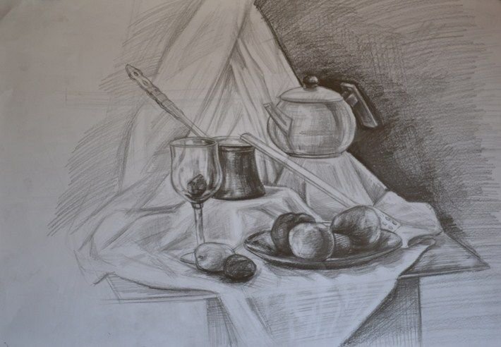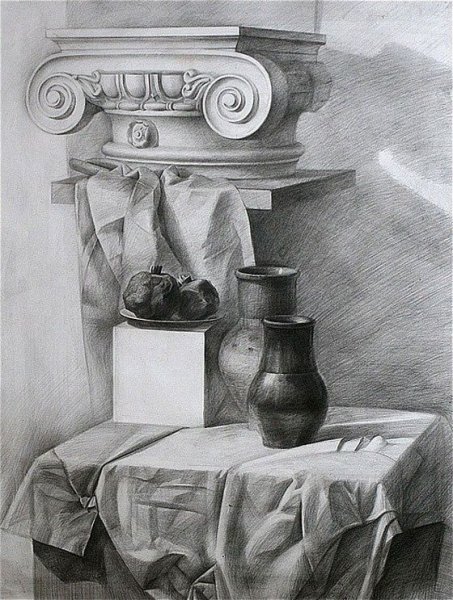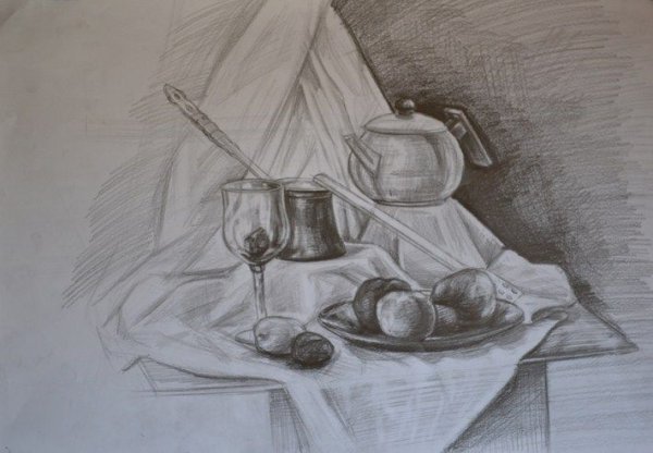 Натюрморт карандашом скатерть - это произведение искусства, созданное с использованием только карандаша как инструмента. Она является живописным изображением скатерти на столе, выполненным с тщательной проработкой деталей и тонких переходов от светлых до темных оттенков. Каждая складка и узор на скатерти переданы с большой точностью, придавая работе реалистичность и объемность. Натюрморт карандашом скатерть может быть как черно-белым, отражающим монохромную гамму, так и цветным, раскрывающим всю палитру оттенков и насыщенности цветов. Это уникальный способ выразить внимание к деталям, тонкое чувство композиции и мастерство работы с карандашом. В результате получается произведение искусства, которое не только восхищает своей технической сложностью, но и передает атмосферу и эмоциональную составляющую предмета, который изображен на натюрморте.