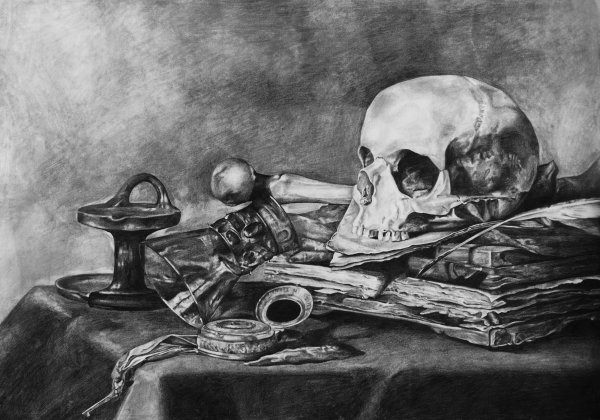 Ванитас натюрморт карандашом - это изображение, созданное с помощью карандаша, которое отражает традиционный жанр натюрморта, известный как "ванитас". Ванитас-натюрморты были особенно популярны во время Золотого века живописи, когда художники использовали символические элементы, чтобы напомнить зрителю о преходящей природе жизни и показать уязвимость человеческой сущности. Ванитас натюрморт карандашом может включать в себя различные объекты, такие как цветы, скелеты, инструменты, музыкальные инструменты или предметы быта, каждый из которых имеет свое значение и символическую значимость. Отличительной чертой этого вида искусства является тщательная детализация и реалистичность, достигаемая благодаря использованию карандаша. Картина ванитас натюрморт карандашом может вызывать в зрителе размышления о времени, смерти, бессмысленности и преходящем характере жизни.