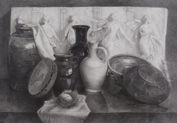 Натюрморт - это жанр изобразительного искусства, который представляет собой изображение неживых предметов, таких как фрукты, цветы, посуда или другие декоративные объекты. Рисунок натюрморта является одной из важнейших составляющих программы обучения в академии художеств. Этот жанр позволяет художникам развить свои навыки в рисовании форм, цветов и теней, а также воспроизвести мельчайшие детали и текстуры предметов. Академия художеств предлагает студентам обширную программу, включающую изучение различных техник и материалов, а также создание собственных оригинальных композиций. Рисунок натюрморта в академии художеств является не только уникальным способом самовыражения, но и важным этапом в процессе формирования художественного мастерства.