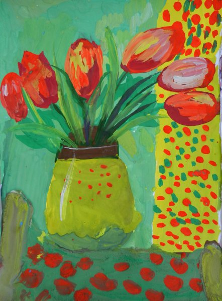 Представьте себе яркий и красочный детский рисунок, выполненный гуашью. Натюрморт, созданный маленькими художниками, захватывает взгляд своей живописностью и оживленностью. На белом листе бумаги расположены различные предметы: фрукты, цветы, предметы быта или игрушки. Каждая деталь проработана с любовью и тщательностью, передавая естественные оттенки и формы объектов. Фантазия и творческий задор юных художников проявляются во всей полноте, перенося на бумагу яркие краски и позитивную энергию. Этот натюрморт гуашью вобрал в себя радость и игривость детства, стимулируя воображение и восхищая своей простотой и беззаботностью. Он может быть отличным украшением детской комнаты или подарком для родителей, который будет напоминать о ярких и неповторимых моментах детства.