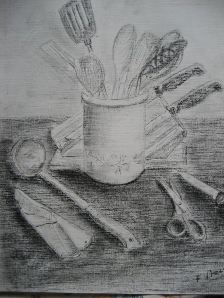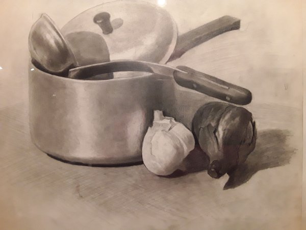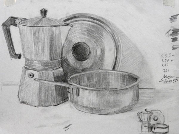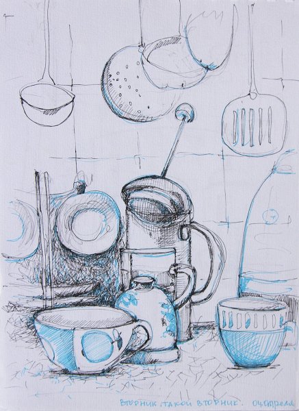 Натюрморт кухонной утвари - это рисунок, который захватывает взгляд своей яркостью и детализацией. На нем изображены различные предметы, используемые на кухне - посуда, столовые приборы, кухонные принадлежности. Каждый элемент внимательно проработан, отражая свою форму, текстуру и цвет. Этот натюрморт создает атмосферу комфорта и уюта, вызывая ассоциации с теплой домашней обстановкой. Рисунок позволяет насладиться мельчайшими деталями кухонной утвари и придает ей художественный вид. Он может использоваться как декоративный элемент для интерьера кухни или быть частью коллекции искусства. В целом, натюрморт кухонной утвари - это оригинальное и интересное произведение, которое подчеркнет вашу любовь к готовке и кулинарным экспериментам.