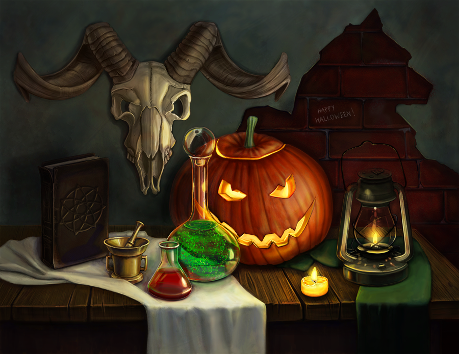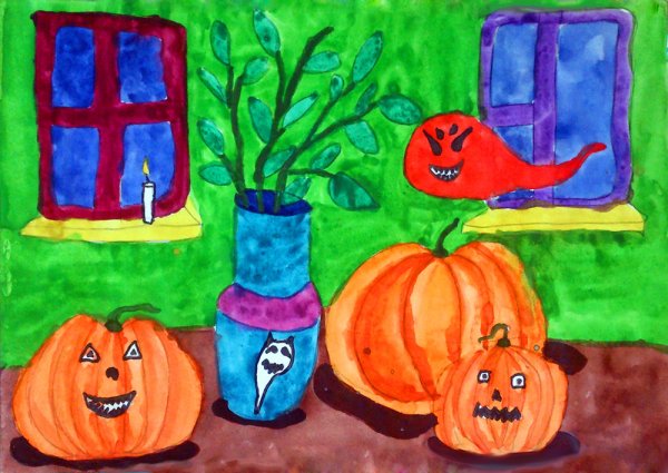 Натюрморт на хэллоуин - это удивительный рисунок, который передает всю атмосферу этого праздника. На нем можно увидеть разнообразные символы и предметы, характерные для Хэллоуина: тыкву с вырезанным лицом, призраков, ведьмину шляпу, черные кошки, паутины, метлы и прочие элементы, которые создают загадочную и мистическую атмосферу. Каждая деталь рисунка аккуратно проработана, что позволяет в полной мере насладиться его красотой и ощутить дух Хэллоуина. Натюрморт на хэллоуин станет отличным украшением для любого помещения и дополнит праздничное настроение в этот особенный день.
