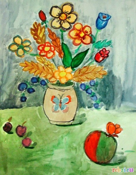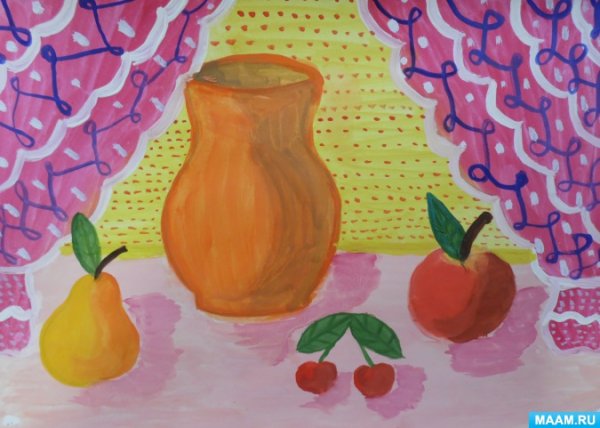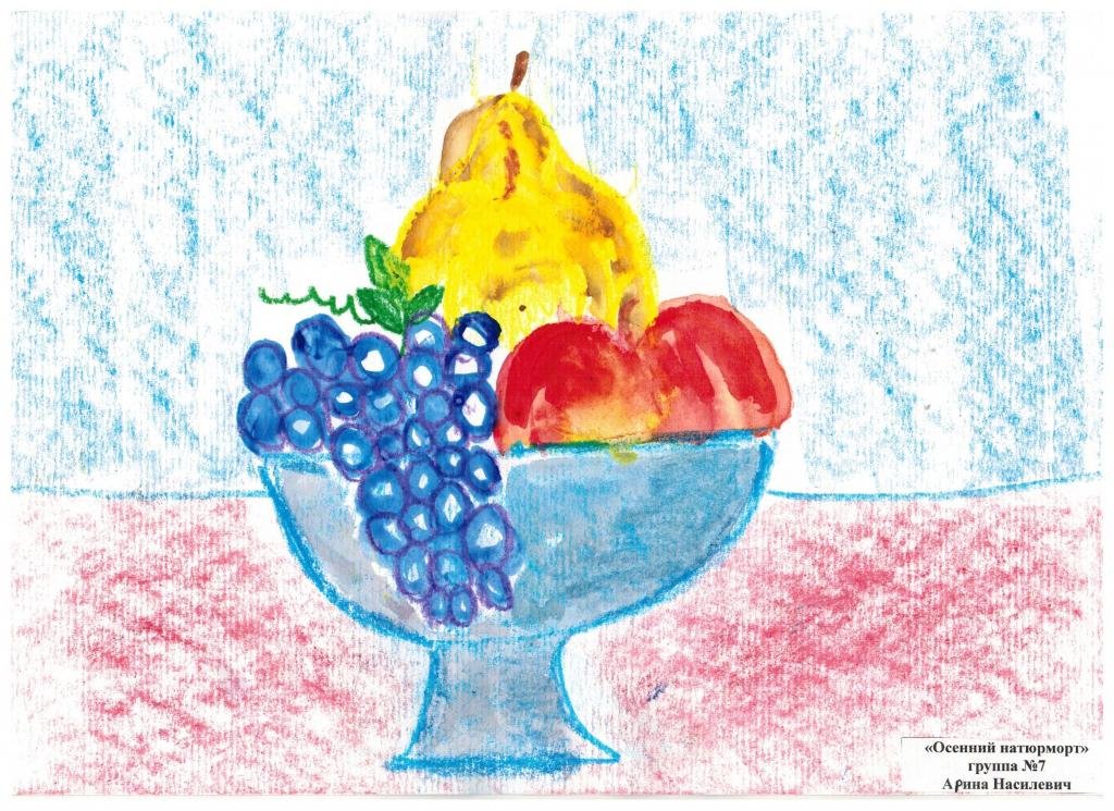 Ребенок нарисовал натюрморт - произведение искусства, воплощающее его ощущения и восприятие окружающего мира. На картине можно увидеть яркие и сочные фрукты, расположенные на столе. Каждый предмет изображен с особой тщательностью: яблоко, груша, апельсин, красиво сочетаясь друг с другом, создают яркую композицию. Рисунок детской руки полон энергии и радости, передавая цвета и формы. Натюрморт позволяет маленькому художнику выразить свое видение мира и поделиться своими эмоциями с окружающими. Это прекрасное творение способно развивать воображение, креативность и художественный вкус у ребенка.