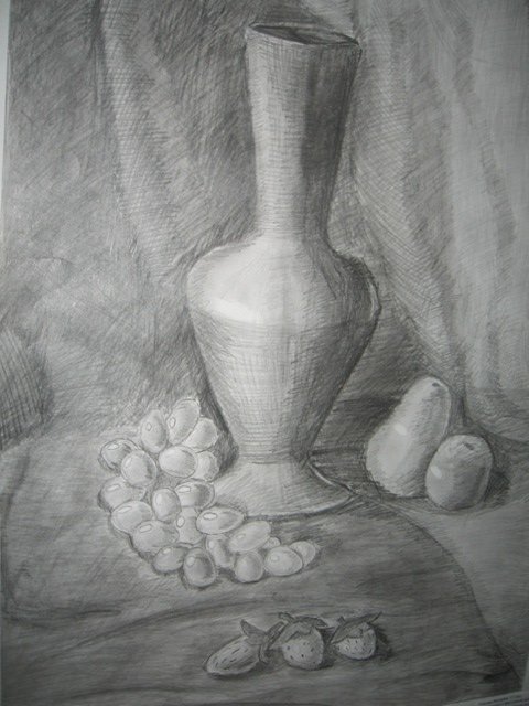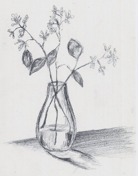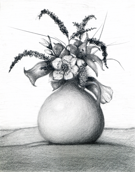 Натюрморт, нарисованный карандашом, изображает вазу с яркими цветами. Каждая деталь внимательно проработана, оттенки и отражения передают реалистичность и объемность объекта. Ваза выглядит элегантной и изысканной, а цветы, которыми она украшена, добавляют живописности и яркости к композиции. Даже через белые листы бумаги, на которой выполнено произведение, можно почувствовать атмосферу и красоту этого натюрморта. Рисунок карандашом великолепно передает тонкие штрихи и текстуры каждого элемента, создавая ощущение реальной вазы и восхитительных цветов. Он подходит для любителей классической и изящной художественной работы, а также для тех, кто ценит мастерство и талант художника.