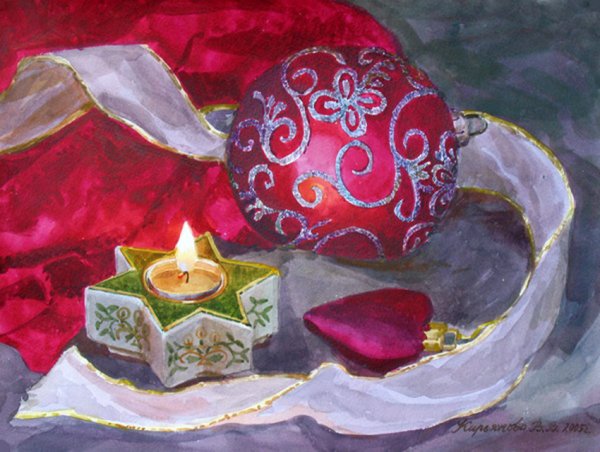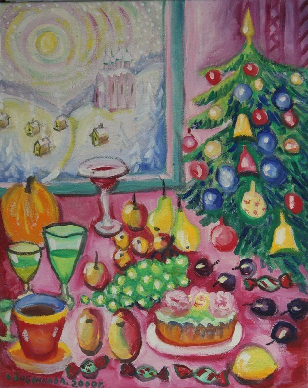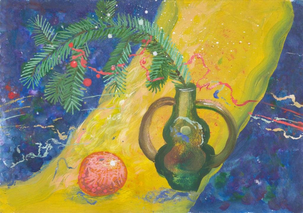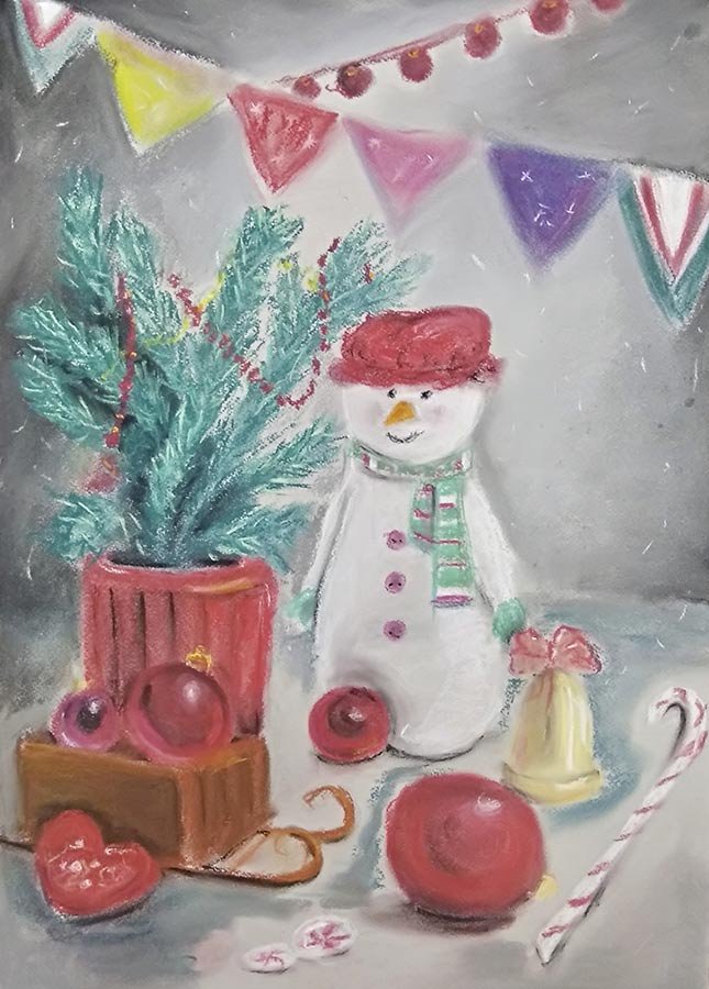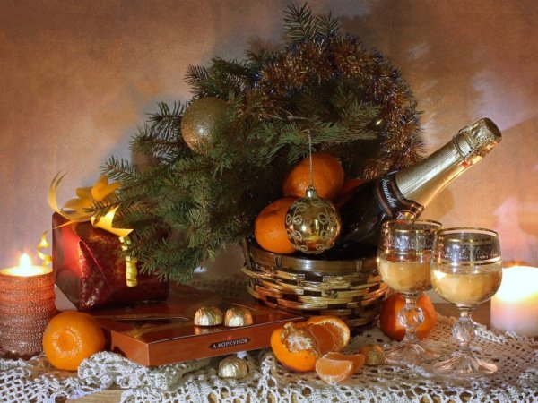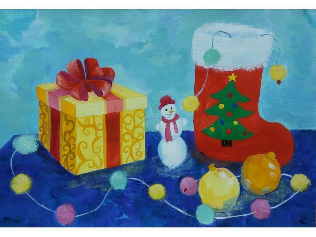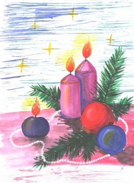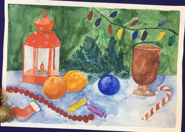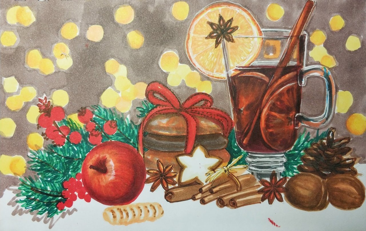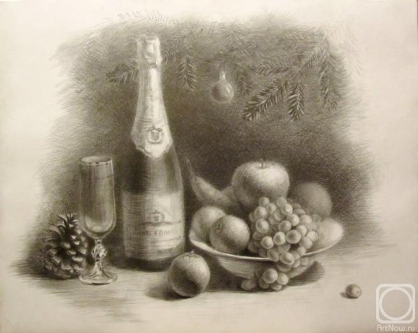 Праздничный натюрморт "Новый год" - это уникальный рисунок, который захватывает атмосферу волшебства и радости этого особого времени года. Картина оживляется яркими цветами и деталями, создавая ощущение праздничной суеты и предвкушения встречи нового года. На натюрморте изображены символы Нового года - елка, подарки, шары, гирлянды, снеговик, праздничная посуда и другие элементы, которые добавляют нотку праздничного настроения и визуального великолепия. Этот рисунок прекрасно подойдет для декорирования интерьера или станет прекрасным подарком для близких и друзей, напоминая им о радостном ожидании наступления нового года.