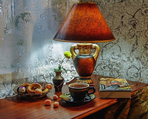 Натюрморт с настольной лампой - это рисунок, который изображает предметы, расставленные на столе вокруг настольной лампы. В центре внимания находится сама лампа, с ее характерным источником света. Рисунок передает атмосферу теплоты и уюта благодаря мягкому освещению, которое создает лампа. Окружающие предметы могут включать книги, чашки, цветы или любые другие элементы, подчеркивающие уютную обстановку. Натюрморт с настольной лампой может быть использован как декоративный элемент в интерьере или служить источником вдохновения для создания мирного и спокойного настроения.