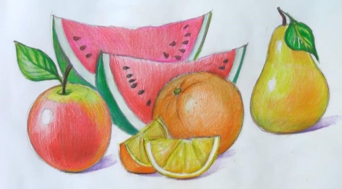 Натюрморт с двумя фруктами, выполненный карандашом, это удивительное произведение искусства, которое притягивает взгляд своей неповторимой простотой и изысканностью. В этом натюрморте каждая черточка карандаша тщательно продумана, каждая деталь выверена до мельчайших нюансов. Фрукты на рисунке прекрасно передают свою форму и текстуру, словно они готовы выпрыгнуть со страницы. Композиция натюрморта удачно подобрана, создавая гармоничное сочетание цветов и форм. Это произведение искусства является воплощением мастерства и таланта художника, оставляя зрителя в полном восхищении и восторге от его красоты.