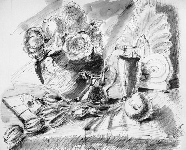 Рисунок пером и тушью натюрморта представляет собой прекрасное произведение искусства, которое создается с использованием классической техники. Используя перо и чернила, художник мастерски передает каждую деталь объектов на натюрморте, воплощая их формы и текстуры. Черные линии и штрихи создают контрасты и глубину, придавая рисунку особый характер и эстетическое значение. Такой вид творчества требует точности и наблюдательности, чтобы передать даже самые маленькие детали и оттенки отображаемых объектов. Результатом является уникальный и живой натюрморт, который захватывает взгляд зрителя и оживляет обыденные предметы.