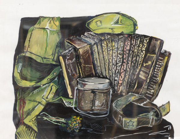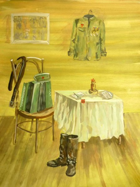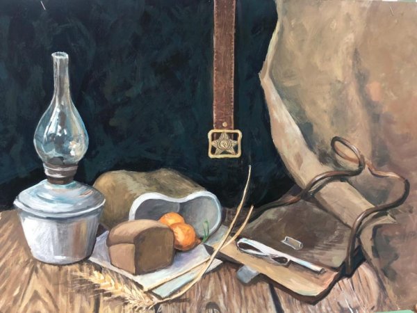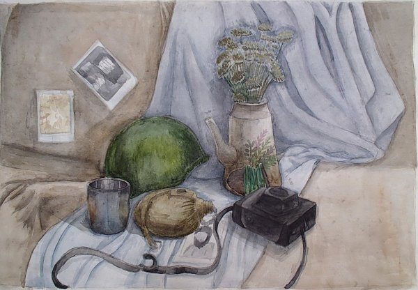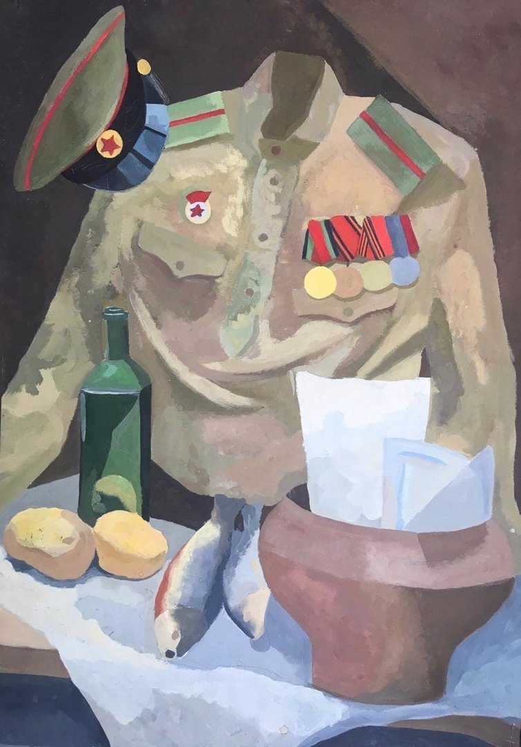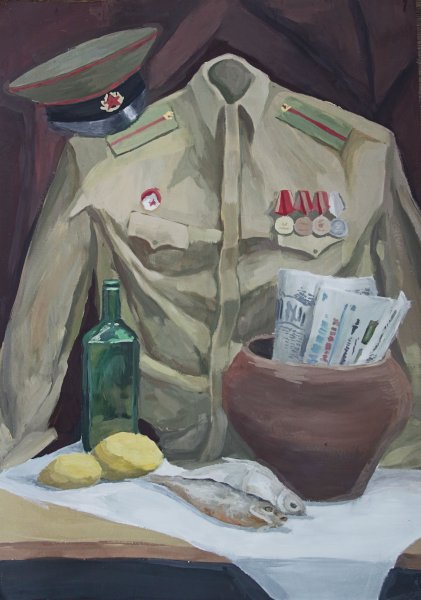 Вас приветствует опытный копирайтер! Позвольте представить вам натюрморт на военную тематику. Этот уникальный рисунок пленит своими яркими и глубокими цветами, передавая атмосферу суровости и мужества. В центре композиции расположены различные военные артефакты - старинные шлемы, оружие и латы, создающие эффект глубины и объемности. Отчетливо прослеживается каждая деталь, от особенностей текстуры до игры света и тени. Натюрморт захватывает взгляд зрителя и раскрывает перед ним исторический контекст, воплощая дух боевых времен и подчеркивая значимость службы и преданности. Это произведение искусства вызывает великое восхищение и является прекрасным акцентом для любого интерьера или коллекции.