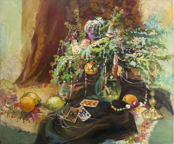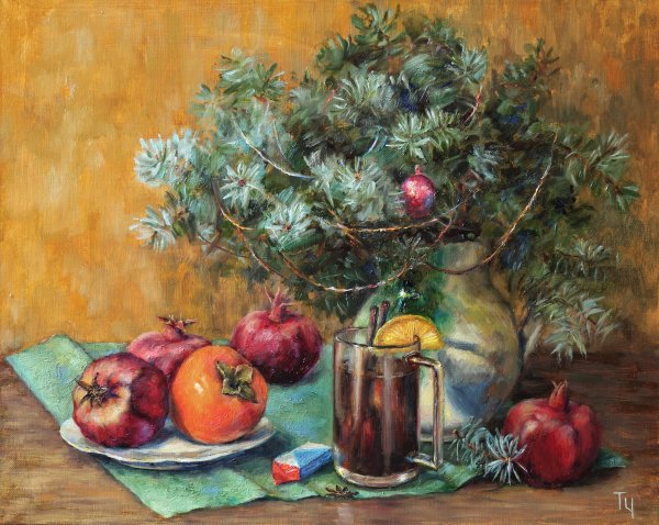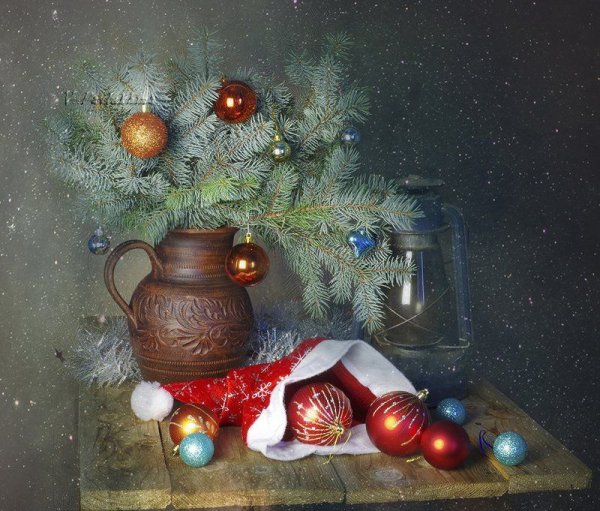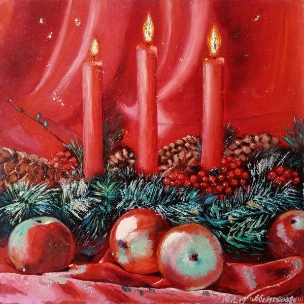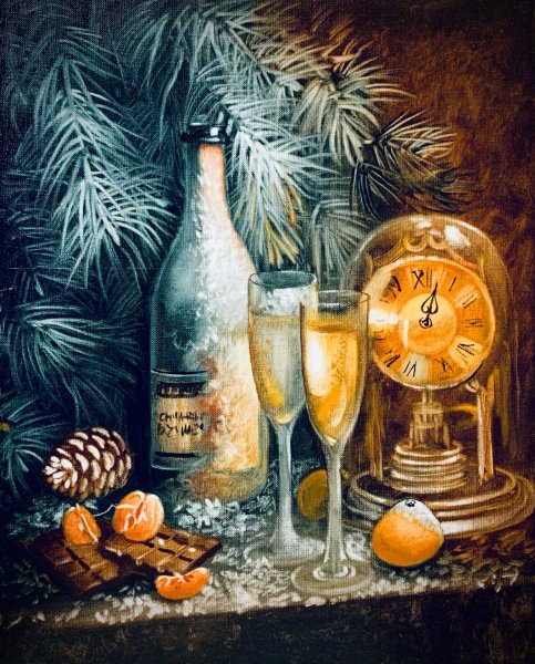 Новогодний натюрморт - это живописное произведение искусства, которое воссоздает атмосферу праздника и радости. В этой композиции художник использует различные элементы и символы Нового года, такие как елка, подарки, игрушки, свечи и снежинки, чтобы передать чувство волшебства и ожидания. Яркие цвета и мягкие кистевые штрихи создают настроение праздника и заставляют нас вспомнить о детстве и радостных моментах. Новогодний натюрморт живопись - это уникальная возможность насладиться красотой и творческим взглядом художника на самый яркий праздник в году.