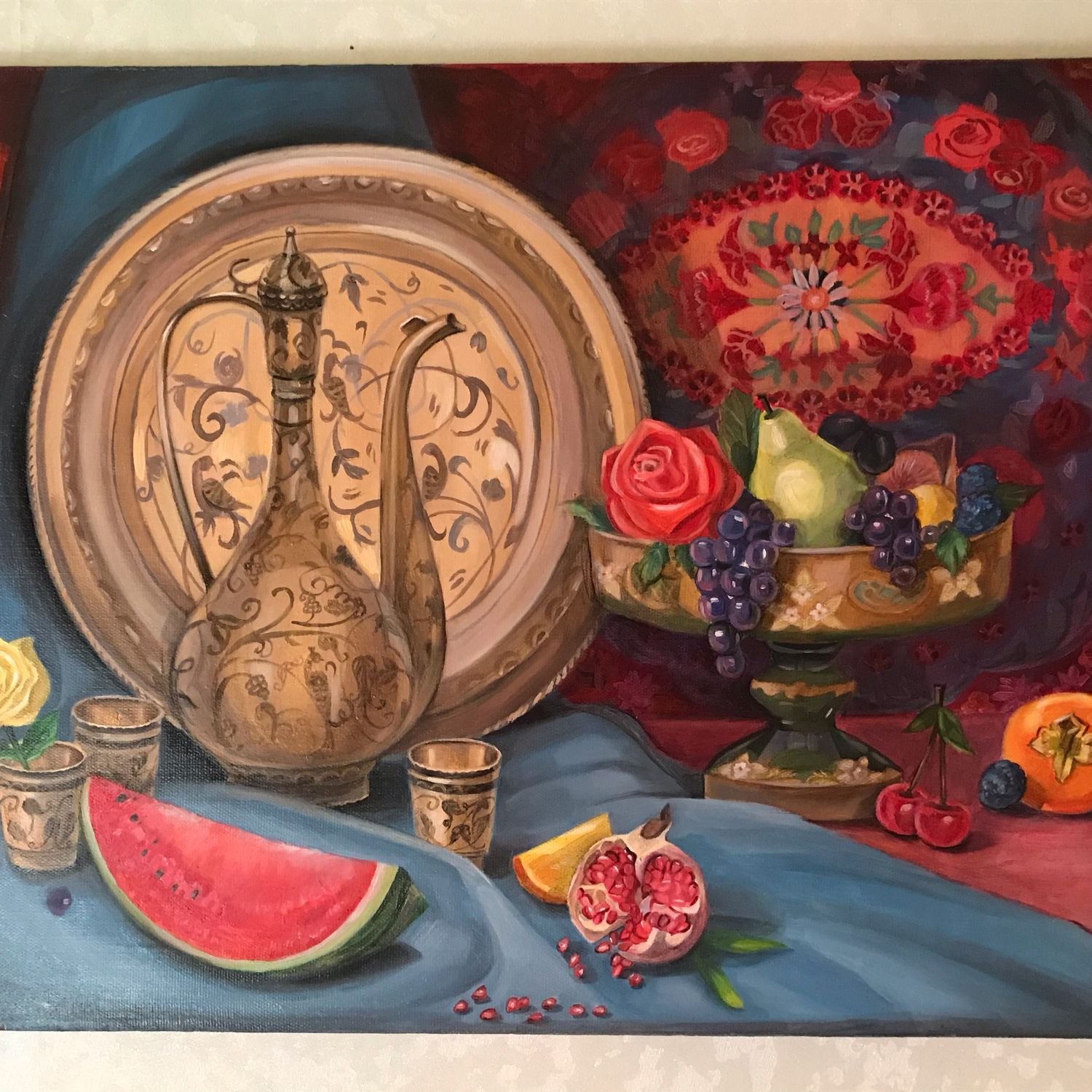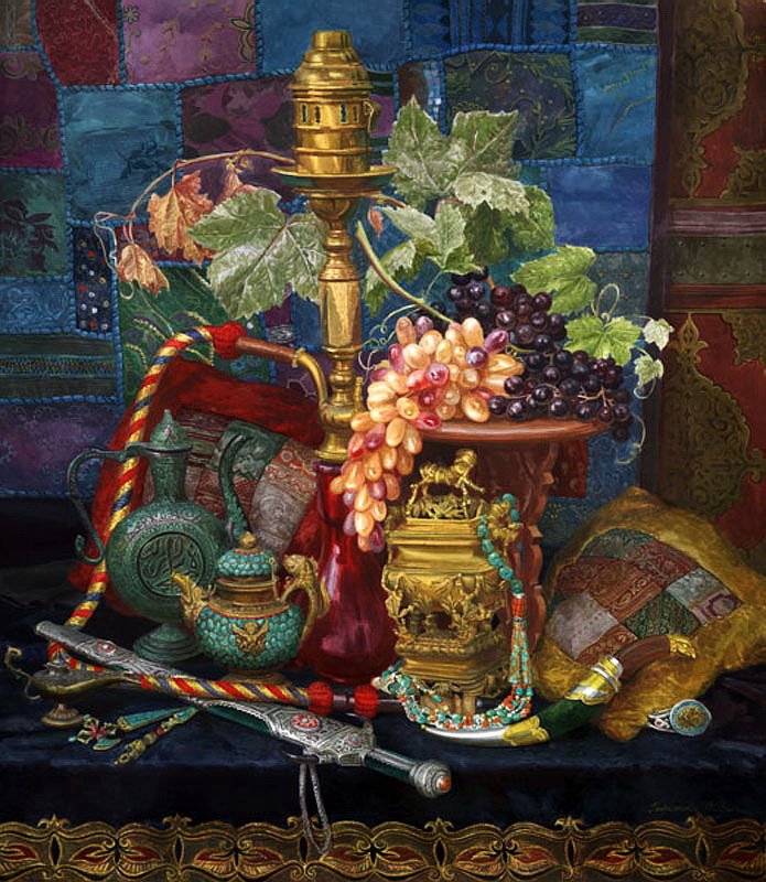 Восточный натюрморт в живописи – это уникальное и изысканное направление, которое обладает своими особенностями и характерными чертами. Он представляет собой комбинацию традиционной японской эстетики и мастерства западных художников. Восточный натюрморт часто отличается минималистичностью и спокойствием, что передается через выбор объектов, цветовую гамму, композицию и освещение. Нежные цвета, плавные линии и преобладание естественных элементов, таких как цветы, фрукты, посуда или растения, создают атмосферу гармонии и покоя. Каждая деталь тщательно подобрана, чтобы передать красоту момента, сохранить его эмоциональную глубину и символическую значимость. Восточный натюрморт в живописи – это не только отражение природы, но и возможность погрузиться в мир загадочности и внутренней медитации, вызывая у зрителя чувство восторга и восхищения.