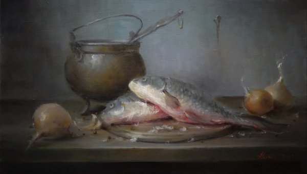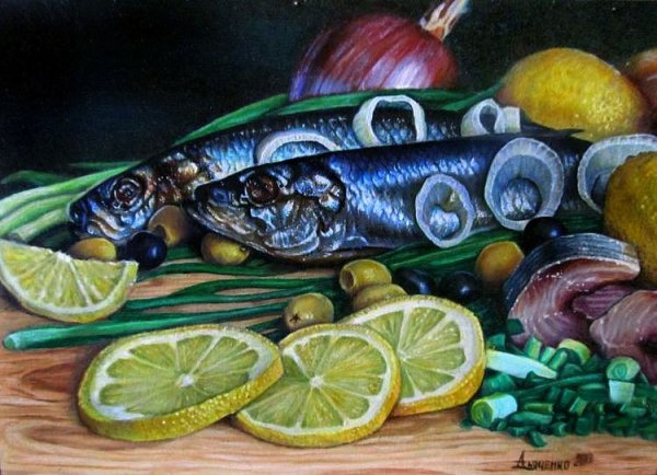 Натюрморт с рыбой - это живописная композиция, в которой главным элементом является свежая и сочная рыба. Эта живопись переносит зрителя в мир морской тематики, создавая атмосферу спокойствия и изящества. Как правило, натюрморты с рыбой мастера живописи передают все детали этого прекрасного морского существа - от его естественной окраски до текстуры чешуи. С помощью цветовой палитры и игры света и тени художник уделяет особое внимание каждому деталю, чтобы передать реализм и натуральность изображаемой рыбы. В результате, натюрморт с рыбой становится не только прекрасным произведением искусства, но и вызывает у зрителя аппетит и желание прикоснуться к этой живописной реальности.