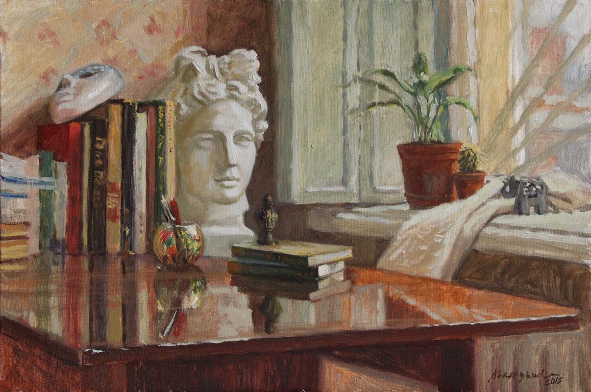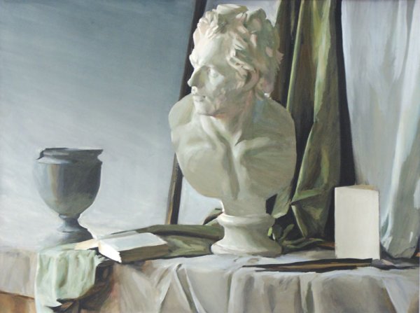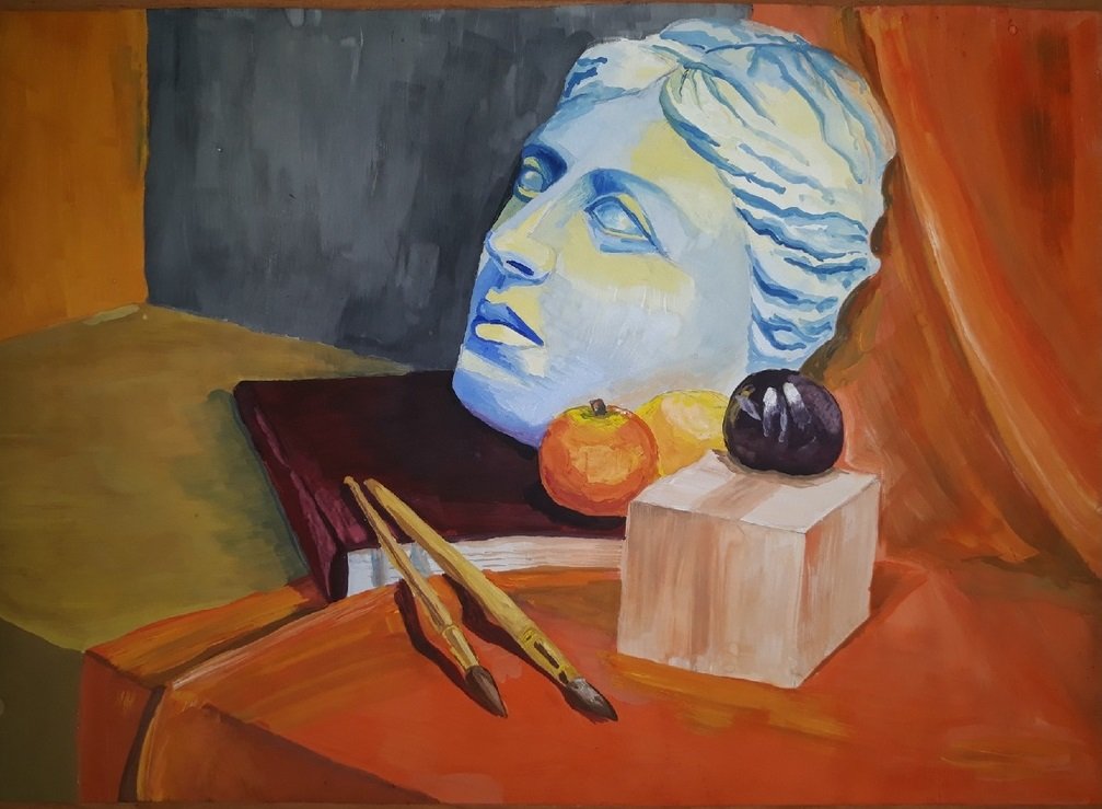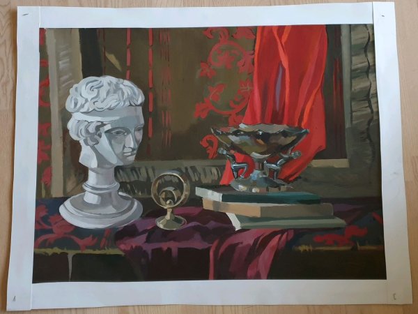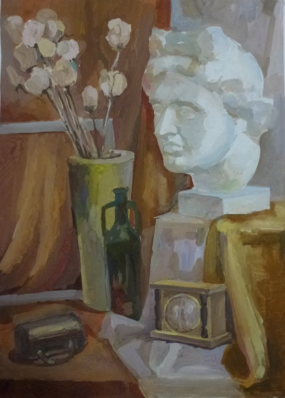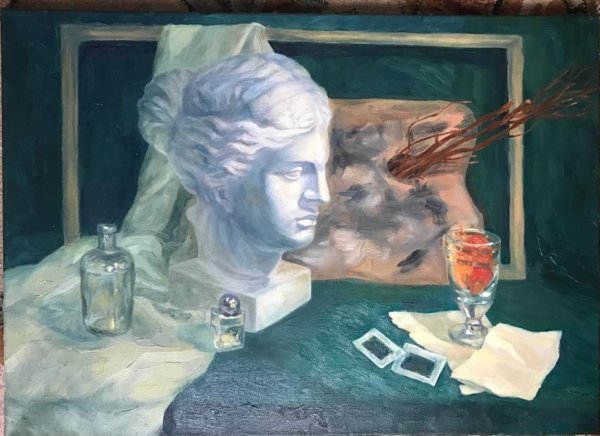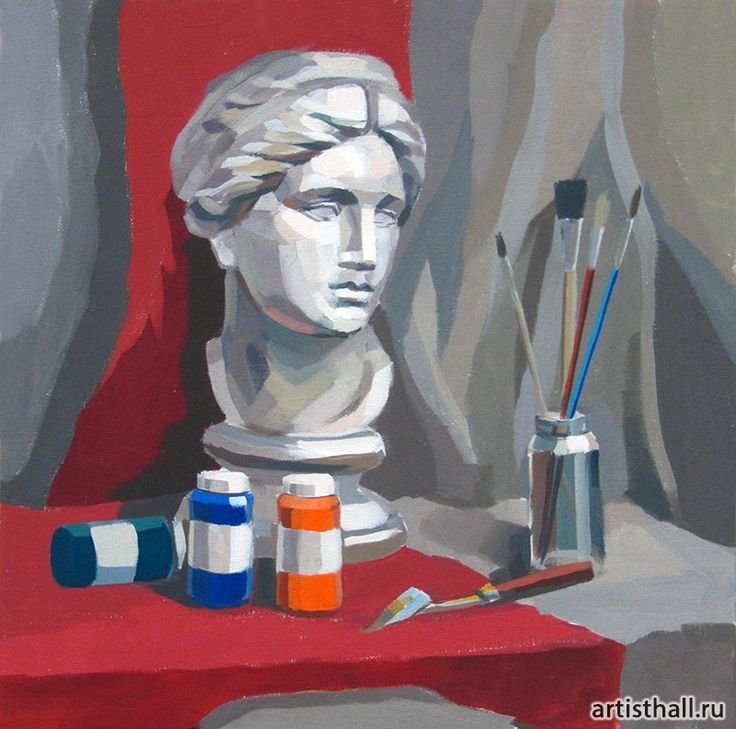 Натюрморт с гипсовой головой - это произведение живописи, которое восхищает своей красотой и эстетикой. Картина создана с использованием мастерства художника, который талантливо передал детали и текстуры гипсовой головы. Возможно, в натюрморте также присутствуют другие объекты, которые дополняют общую композицию и создают гармоничное сочетание форм и цветов. Это произведение искусства способно вызывать у зрителя разнообразные эмоции и переносить его в мир красоты и вдохновения.