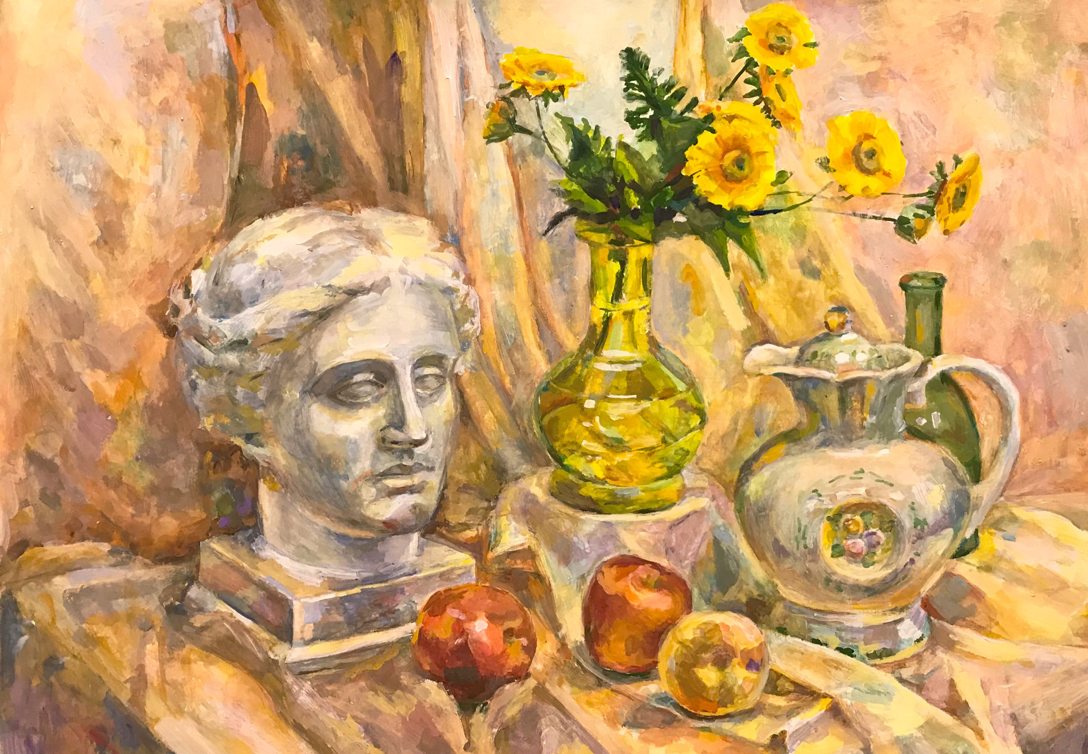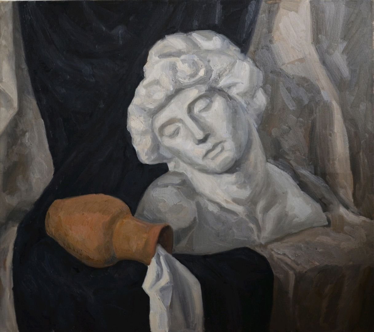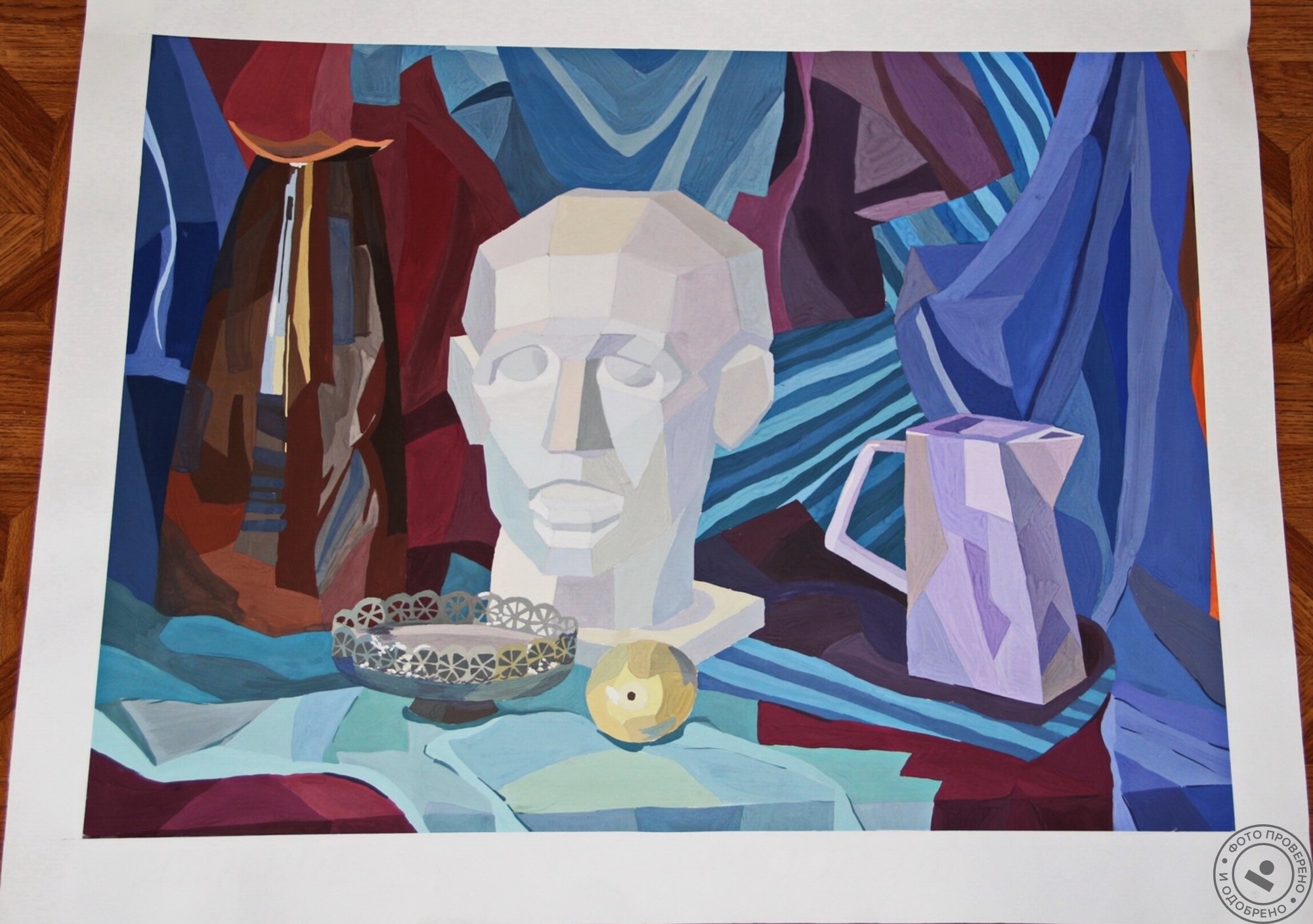 Натюрморт с гипсовой головой - это произведение живописи, которое восхищает своей красотой и эстетикой. Картина создана с использованием мастерства художника, который талантливо передал детали и текстуры гипсовой головы. Возможно, в натюрморте также присутствуют другие объекты, которые дополняют общую композицию и создают гармоничное сочетание форм и цветов. Это произведение искусства способно вызывать у зрителя разнообразные эмоции и переносить его в мир красоты и вдохновения.