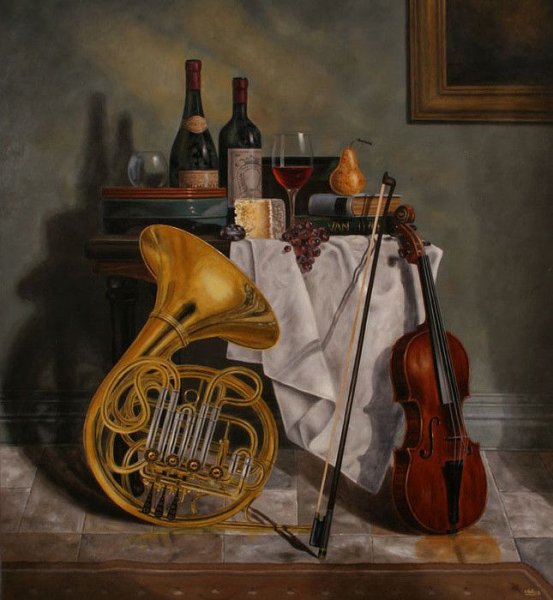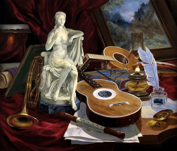 Этот натюрморт с музыкальными инструментами - настоящая живописная картина, которая заставляет звучать мелодию в сердце каждого зрителя. Кисть художника с легкостью передает красоту и глубину каждого инструмента - от благородного дерева фортепиано до изящности скрипки и мощи трубы. Цветовая палитра живописи наполняет пространство яркими и насыщенными оттенками, создавая атмосферу гармонии и вдохновения. Эта картина приглашает каждого зрителя окунуться в мир музыки, почувствовать эмоциональное взаимодействие инструментов и пережить уникальность каждой ноты, раскрывая свою собственную историю. Она является воплощением искусства музыки в визуальной форме, заставляя нас остановиться и насладиться ее великолепием. Натюрморт с музыкальными инструментами - это не только произведение искусства, но и источник вдохновения для всех любителей музыки и красоты.
