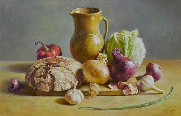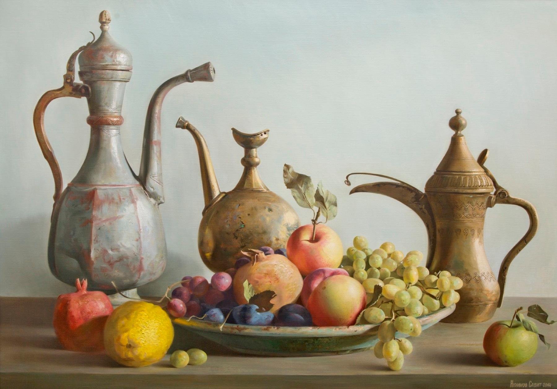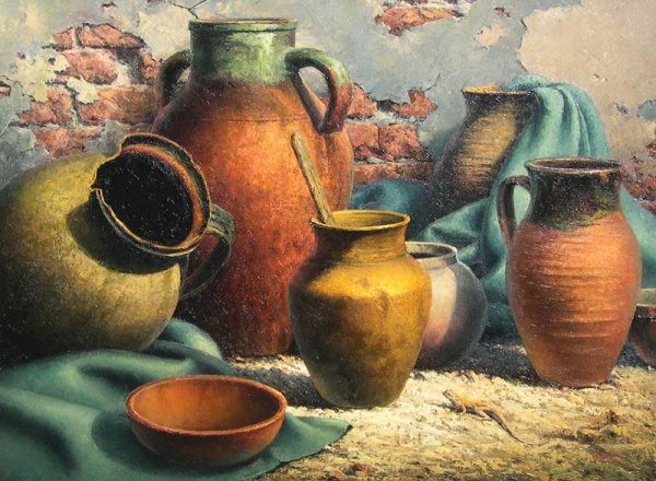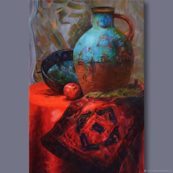 Натюрморт с кувшином - это живописное произведение искусства, которое изображает кувшин в качестве главного объекта. Натюрморты - это жанр живописи, где художники передают предметы неживой природы, расставляя их в композиции на холсте. Кувшин, как часто используемый предмет в натюрмортах, является символом изобилия, благополучия и домашнего уюта. В таких произведениях художник может играть с цветами, текстурами и светом, чтобы создать эффект реализма и привлечь внимание зрителя. Натюрморт с кувшином позволяет оценить техническое мастерство художника и его способность передать красоту и атмосферу момента. Этот вид живописи подходит для различных интерьеров и может стать прекрасным украшением вашего дома или рабочего пространства.