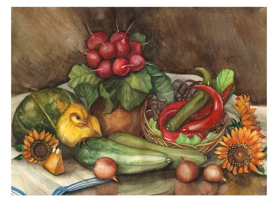 Натюрморт с овощами - это живописная композиция, в которой различные овощи выступают в роли главных элементов. Эта форма искусства позволяет передать красоту и естественность природы, а также отразить богатство цветов и форм овощей. Натюрморт с овощами может быть ярким и насыщенным, сочетая в себе разнообразные оттенки зелени, красного, желтого и оранжевого цветов. Каждый овощ имеет свою уникальную текстуру и форму, что придает картине особую изящность. Такие натюрморты могут стать прекрасным украшением интерьера, добавляя ему свежести и природной гармонии.