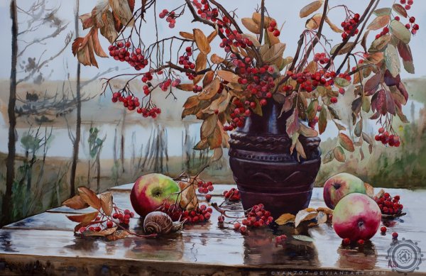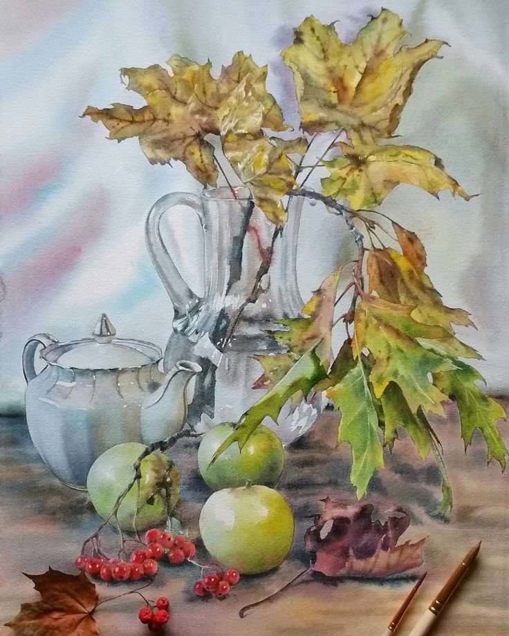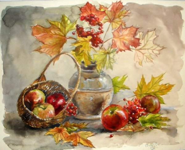 Живопись осеннего натюрморта акварелью является уникальным искусством, которое позволяет передать всю красоту и теплоту осенней природы. В таких работах можно ощутить гармонию и спокойствие, которые присущи этому времени года. Акварельные краски помогают создать нежную и прозрачную палитру, отражающую изменяющиеся цвета листвы, падающие листья и теплые оттенки осеннего солнца. Каждый штрих кисти на холсте отражает чувство мгновенности и эмоций, позволяя зрителю окунуться в умиротворенный мир осеннего пейзажа. Осенний натюрморт акварелью является прекрасным способом запечатлеть и сохранить уникальные моменты этого чудесного времени года.