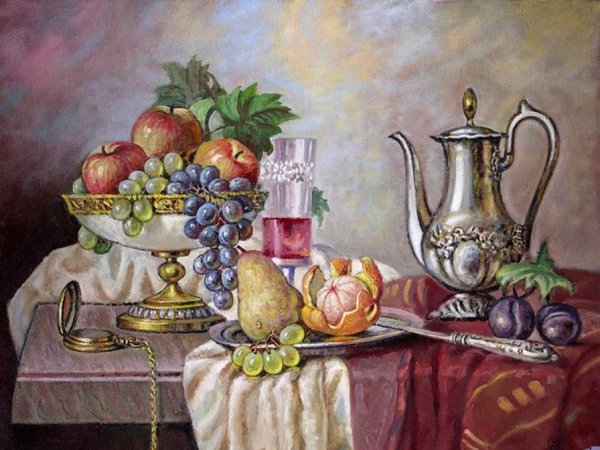 Натюрморт в живописи - это искусство изображать предметы, такие как фрукты, овощи, посуду и другие объекты, на холсте или бумаге. Идеальным способом добавить немного красок и жизни в интерьер кухни является размещение натюрморта, который привлекает внимание и создает атмосферу изобилия и обилья. Каждый элемент натюрморта тщательно выбран и расположен с учетом художественных принципов композиции, чтобы создать гармоничное и эстетически приятное изображение. Такой натюрморт станет не только отличным дополнением к интерьеру, но и подарит вам радость наблюдения за его яркими цветами и деталями. Он может быть выполнен в различных стилях, от реалистичного до современного, и поможет создать уютную и стильную атмосферу на вашей кухне.