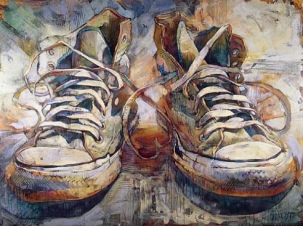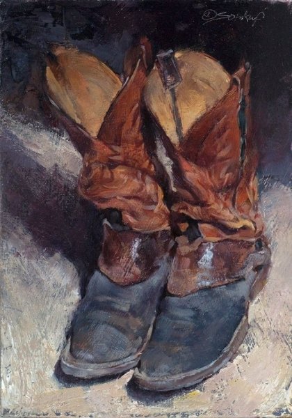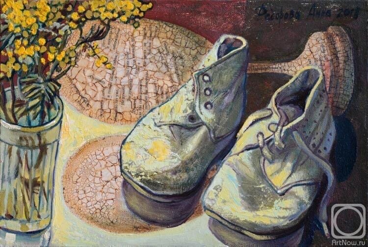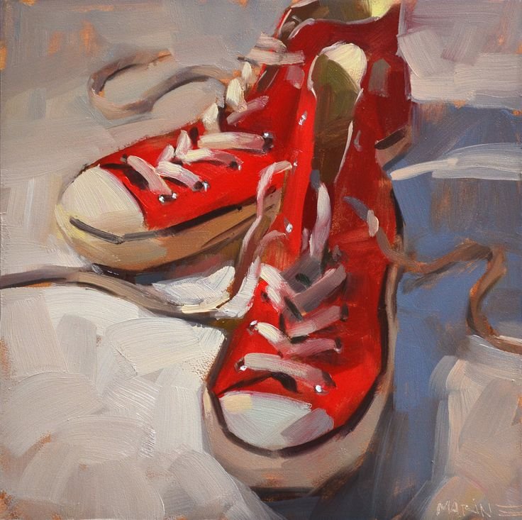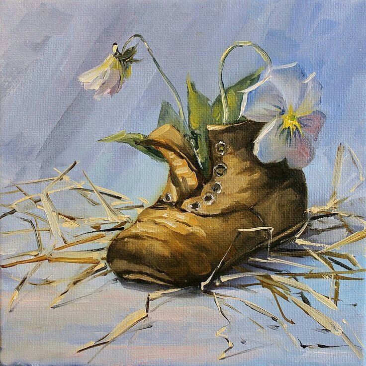 Натюрморт с обувью - это вид живописи, который изображает различные пары обуви или отдельные предметы обуви. Этот жанр искусства позволяет художникам передать красоту и эстетику обуви, а также создать интересные композиции и играть с цветами, текстурами и формами. В натюрморте с обувью можно увидеть как классические и элегантные туфли и ботинки, так и спортивную обувь или экзотические модели. Художники используют различные техники и стили, чтобы передать настроение и особенности каждой пары обуви. Натюрморт с обувью - это не только прекрасное воплощение мастерства художника, но и возможность насладиться изысканностью и красотой обуви на холсте.