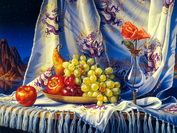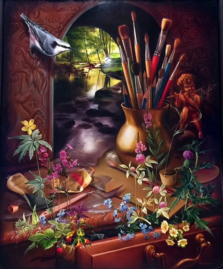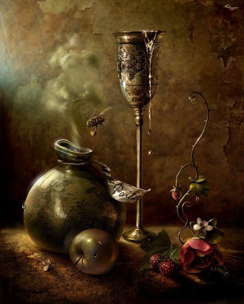 Натюрморт фэнтези живопись - это уникальное и захватывающее направление в искусстве, которое сочетает классический натюрморт с элементами фантастического мира. Эти картины поражают воображение зрителей своей необычностью и магией, создавая атмосферу загадочности и сказочности. На таких полотнах можно увидеть разнообразные предметы, плоды природы, цветы, драгоценности или артефакты, которые оживают перед глазами зрителя благодаря тонкой игре света и теней. Каждый элемент на картинах имеет свою символику и историю, открывая перед нами новый мир фэнтези и волшебства. Натюрморт фэнтези живописи - это возможность погрузиться в чудесный мир искусства и окунуться в удивительную историю, рассказанную через художественные формы и элементы этого уникального жанра.