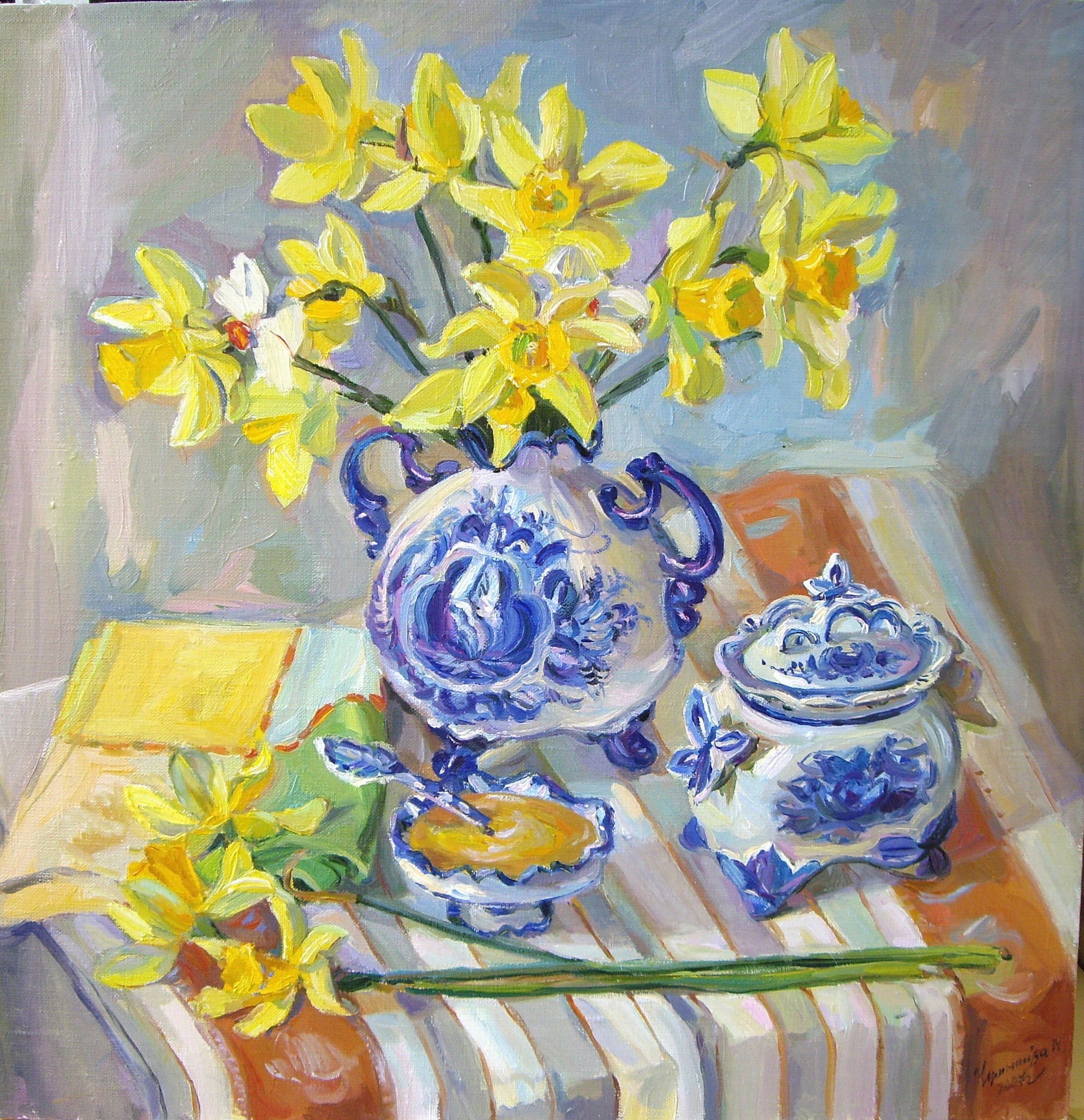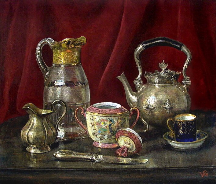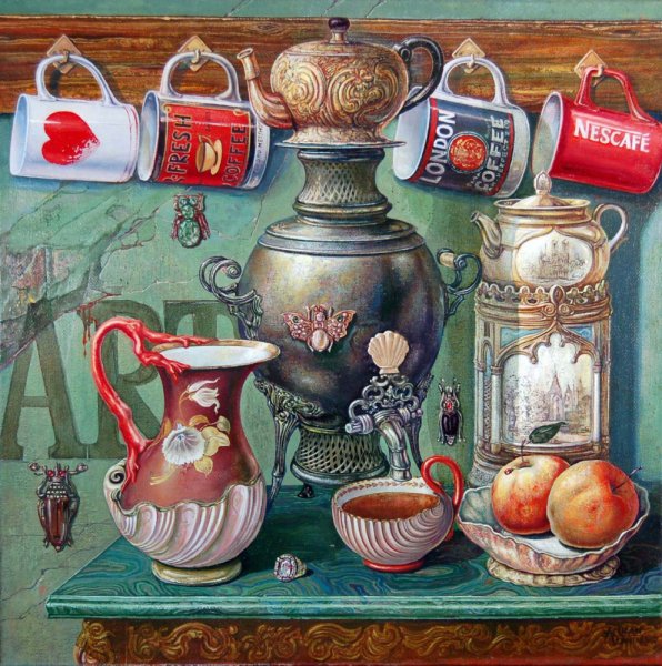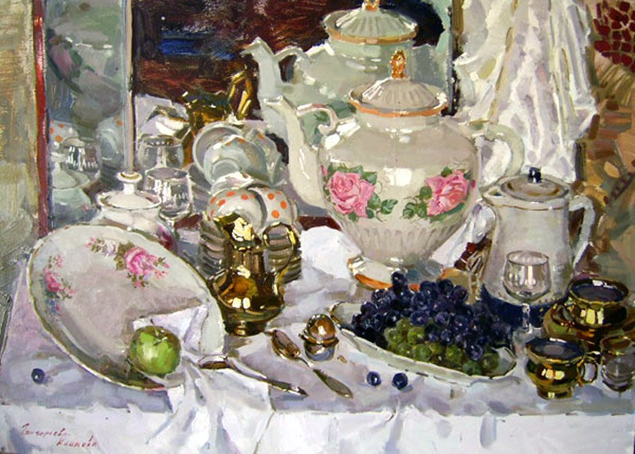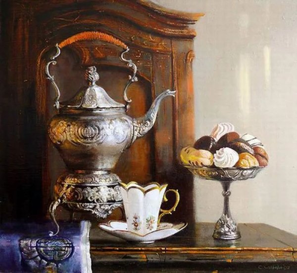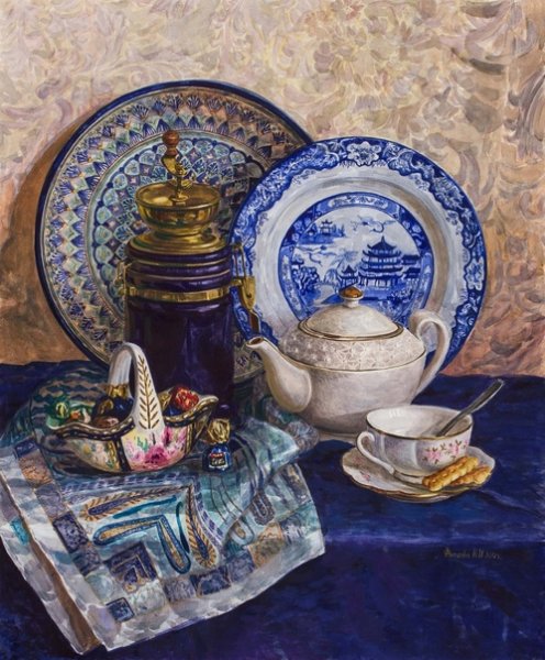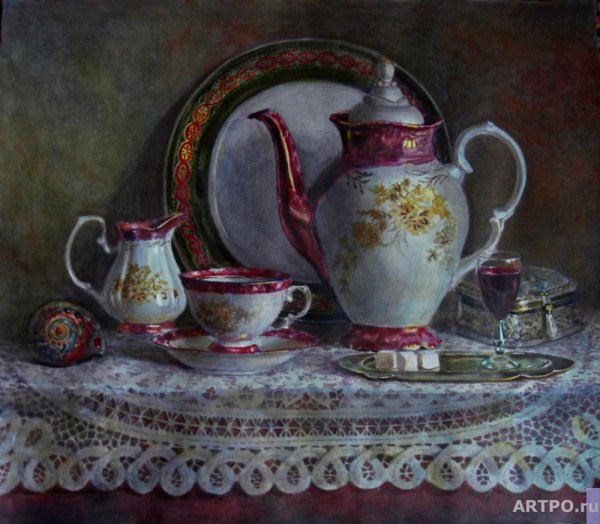 Натюрморт с посудой - это прекрасный жанр живописи, который позволяет передать красоту и элегантность предметов домашнего интерьера. В таких произведениях художники изображают различные предметы посуды, такие как чашки, блюда, вазы, кувшины и другие, расставленные на столе или на фоне уютного помещения. Они аккуратно отражают свет и тени, создавая реалистичную и гармоничную композицию. Натюрморты с посудой часто являются символами обильности и изобилия, а также могут передавать определенное настроение или эмоции. Благодаря тщательно проработанным деталям и мастерству художника, такие произведения источают неповторимую атмосферу и приносят радость зрителю. Натюрморт с посудой - это прекрасное дополнение к интерьеру и выражение вечной красоты предметов повседневного использования.